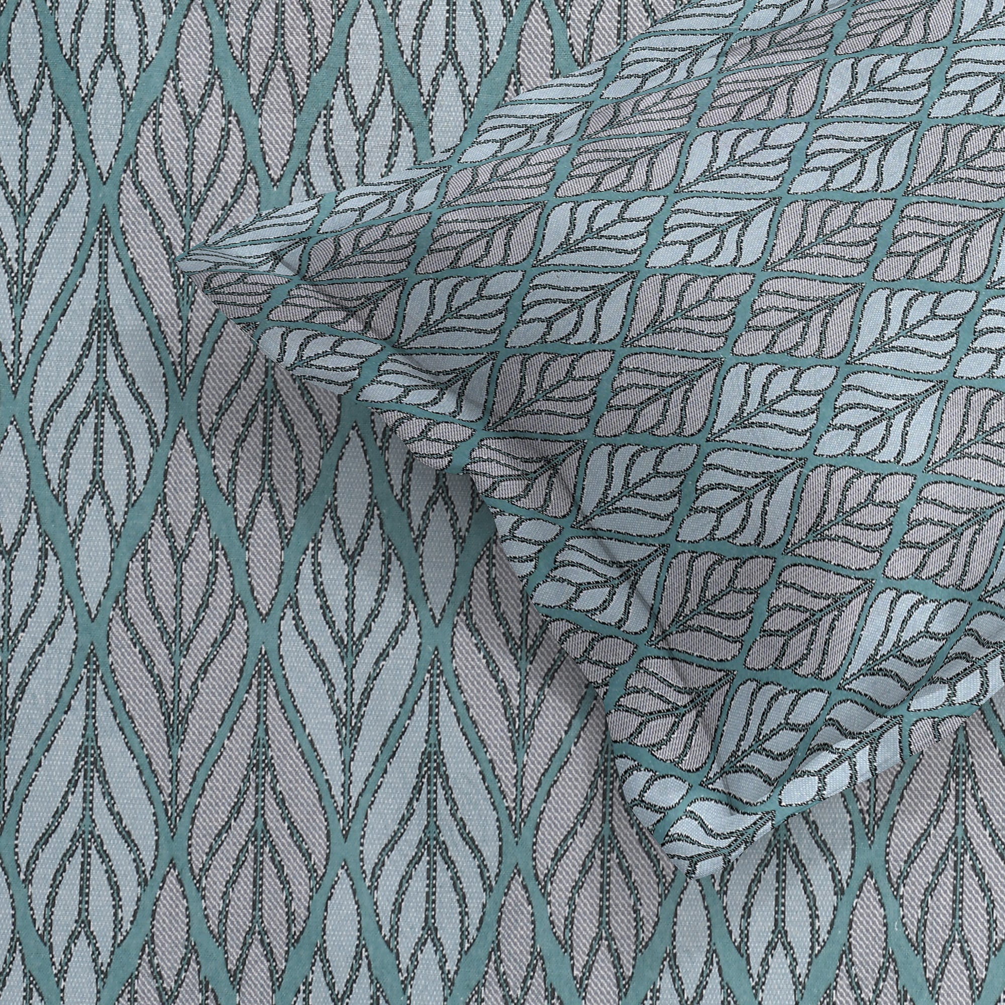 · One side feature flowing aqua blue and grey wave motifs for a soothing, contemporary vibe.