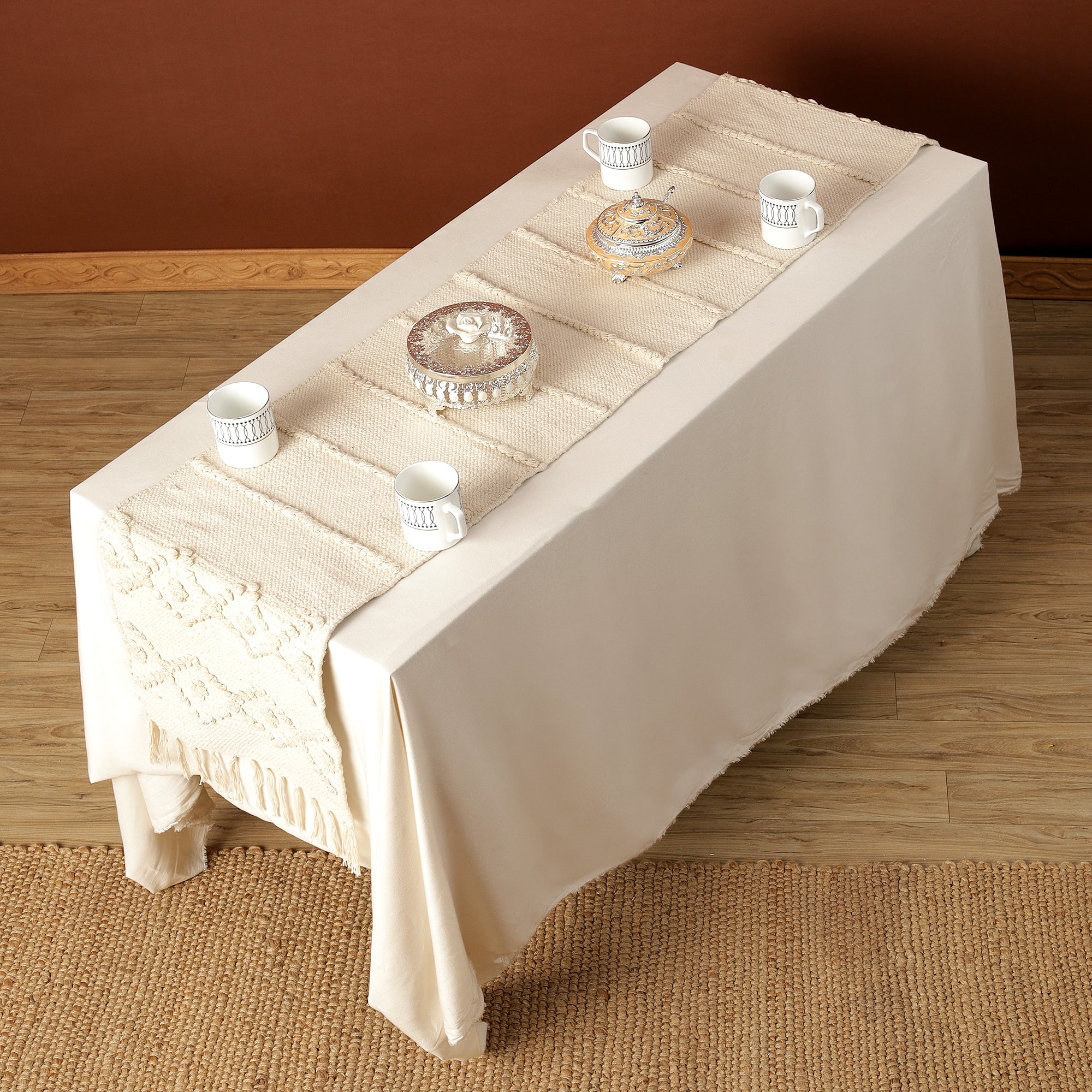 · STYLISH DESIGN – Enhance your dining experience with this beautifully woven table runner featuring a sophisticated Beige Table Runner with intricate tassels.