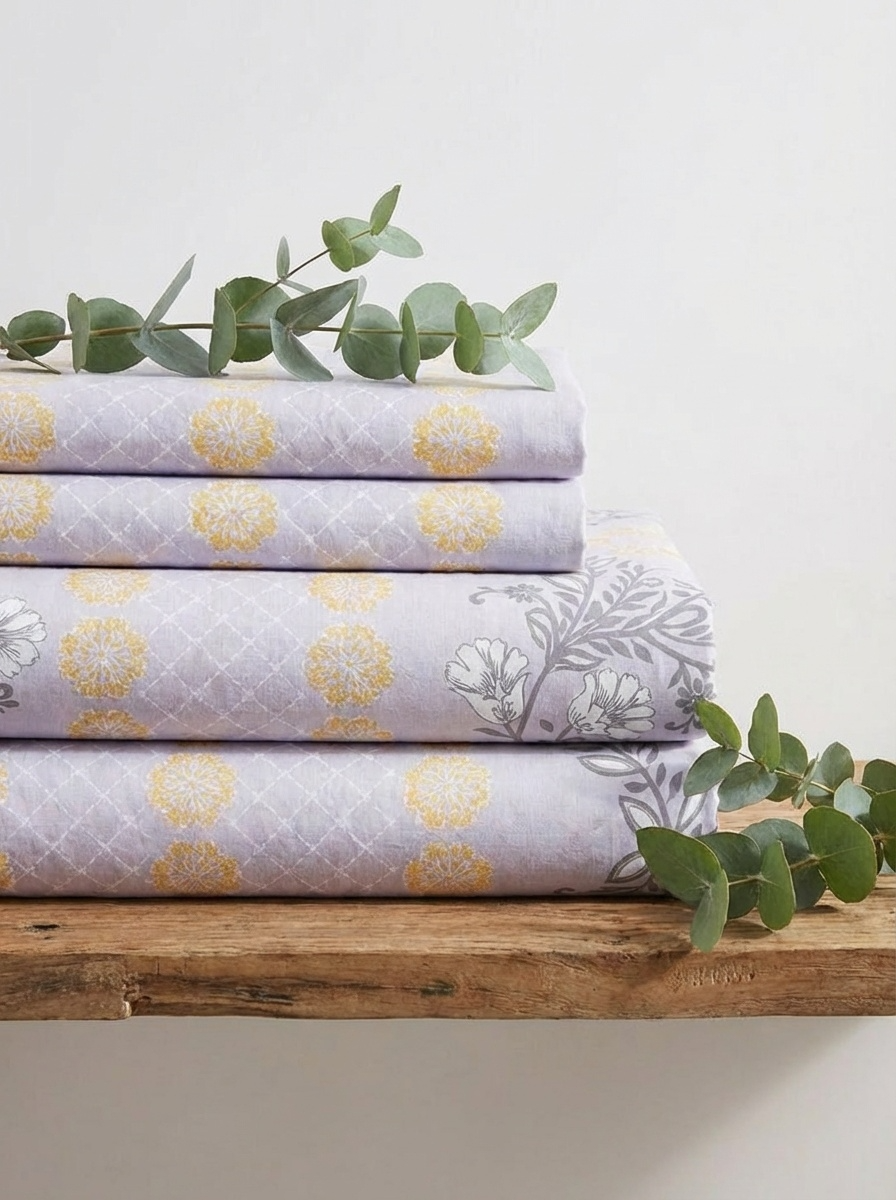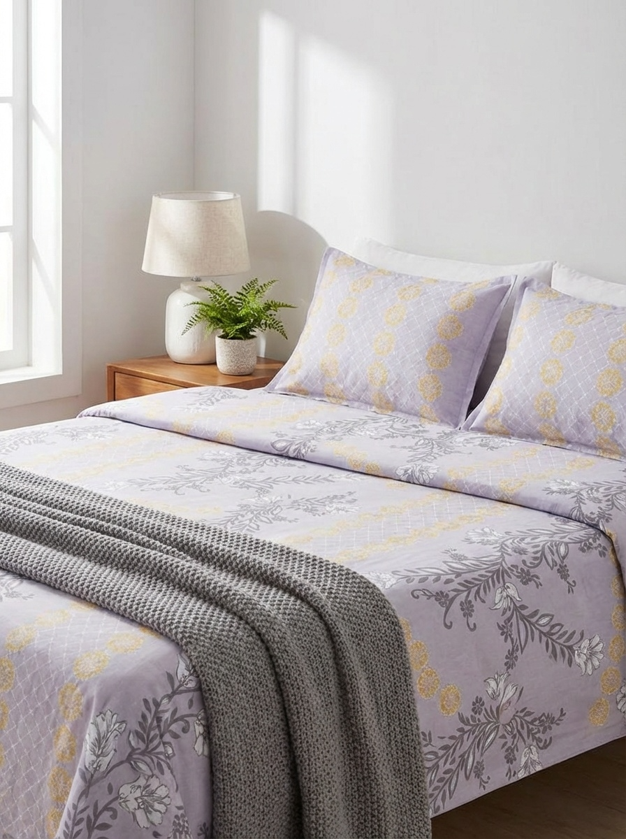 Birdsong Bloom And Sunlit Grace Cotton Blend Bedsheet