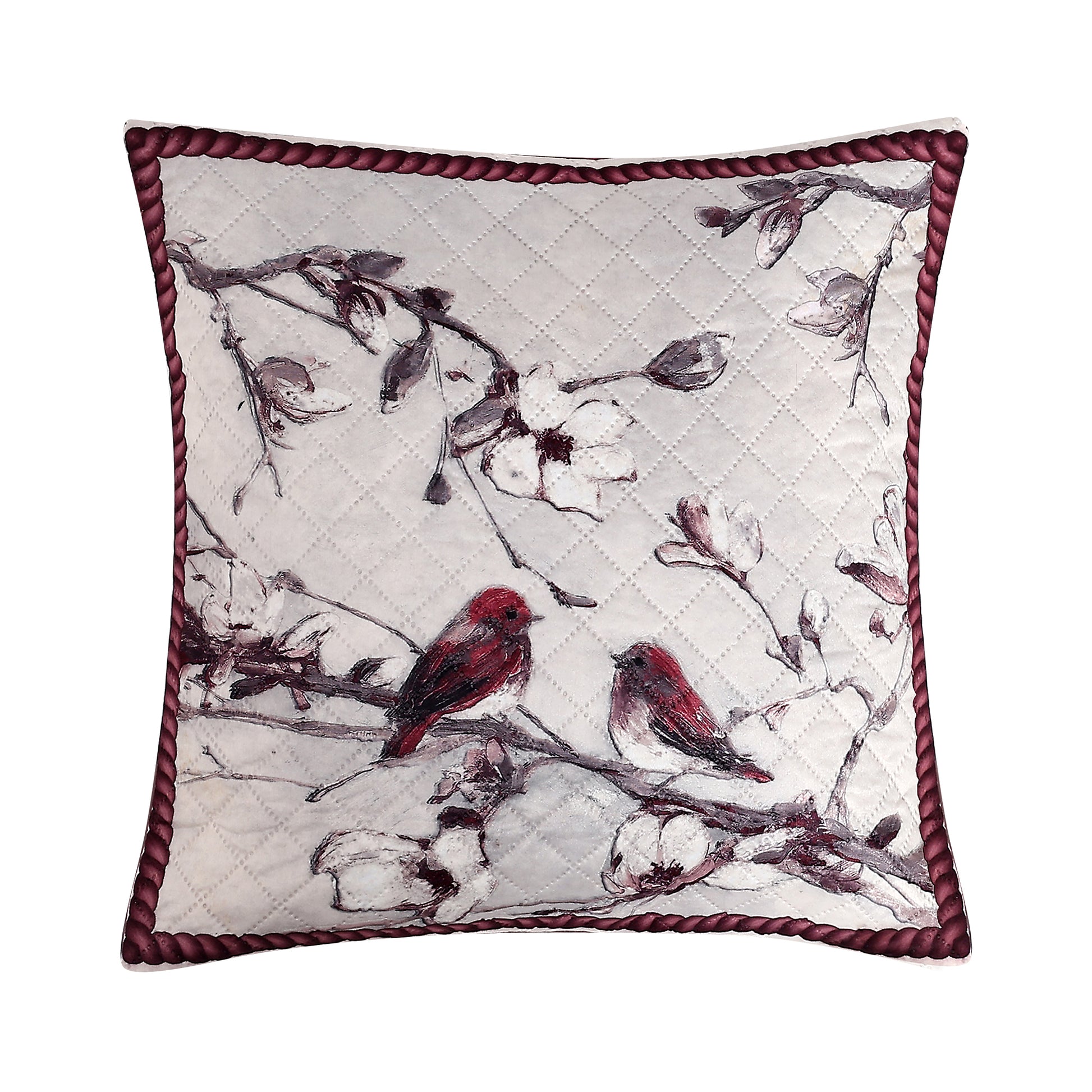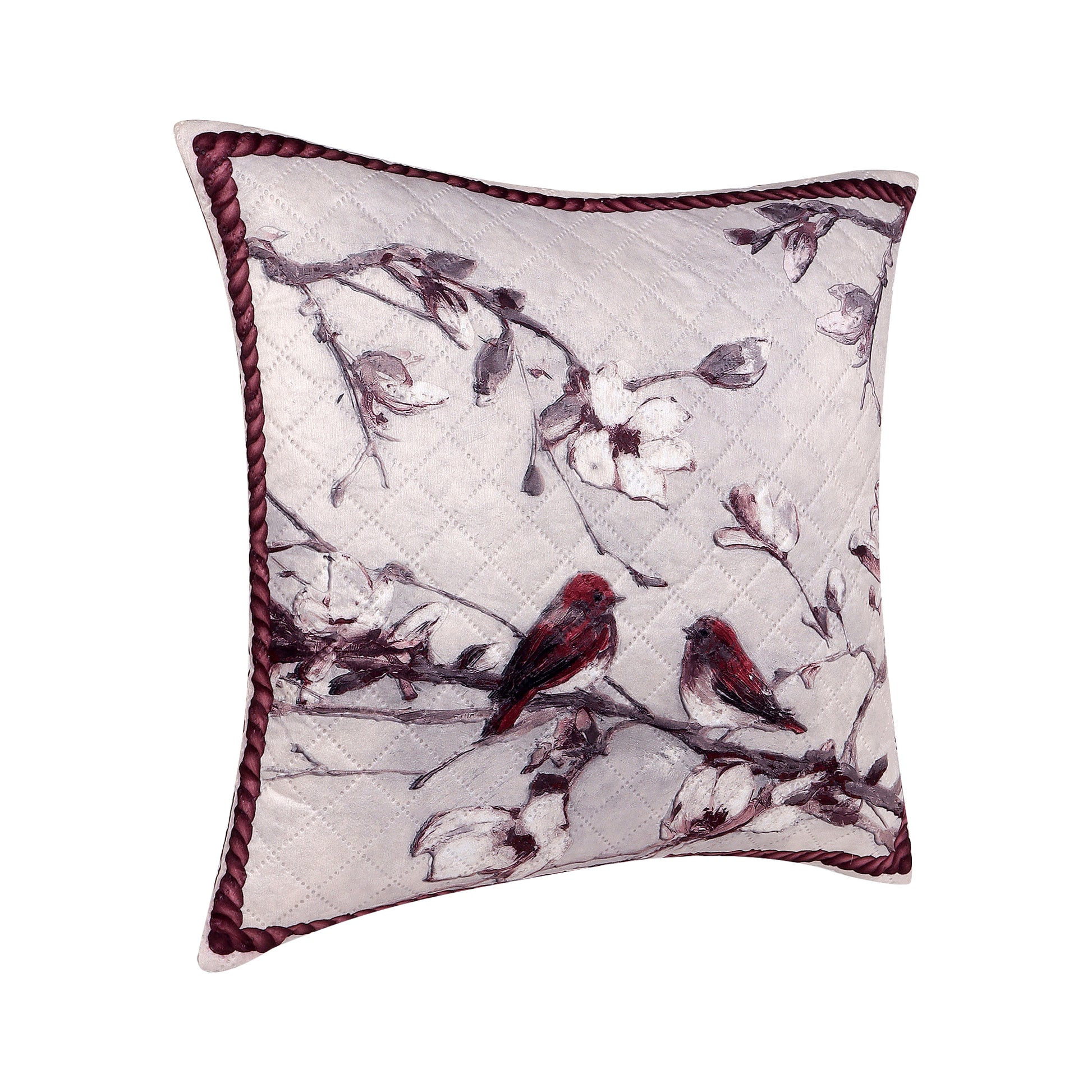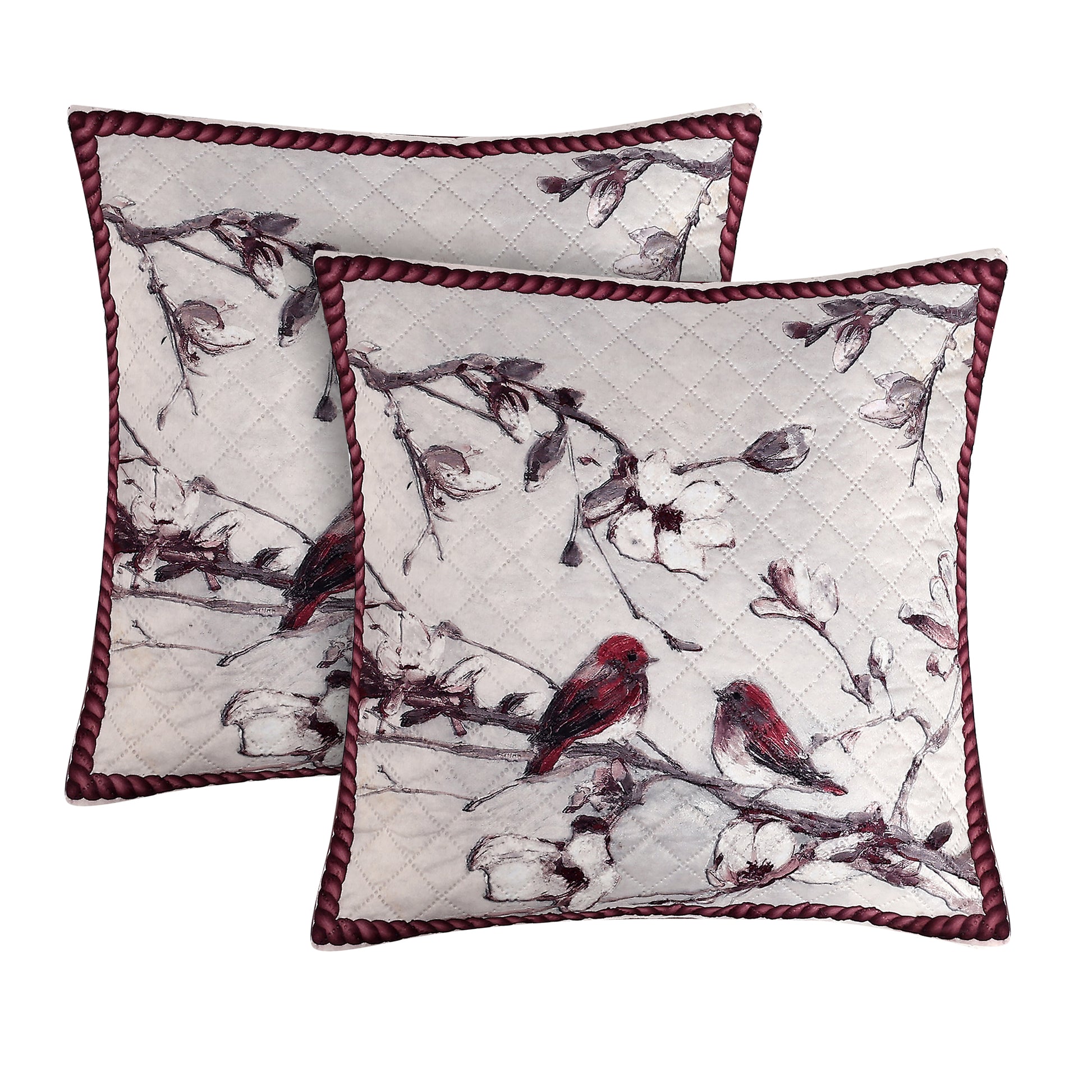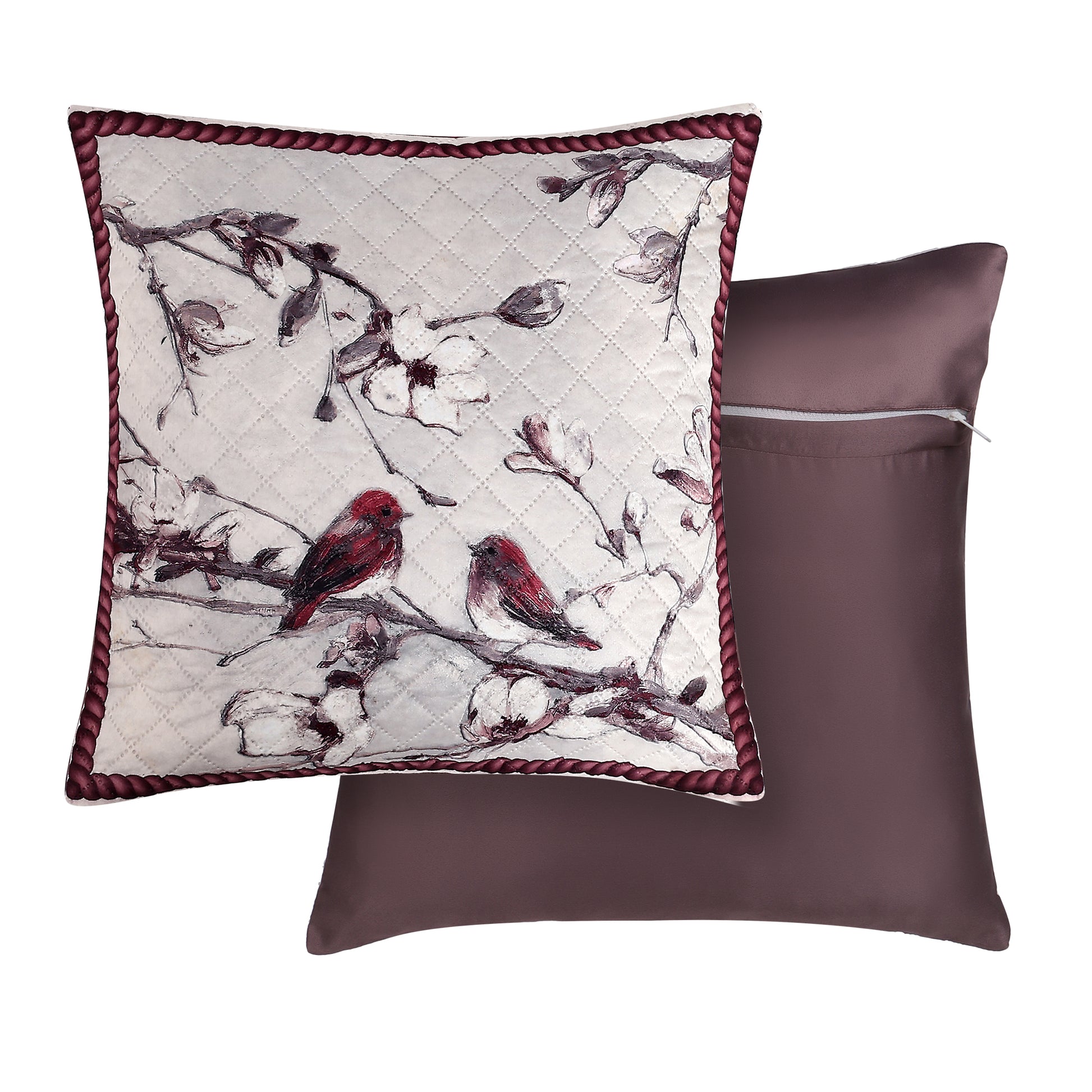 Birdsong & Blossoms Design– Premium Quilted Cushion Cover – 14 x 14 inches