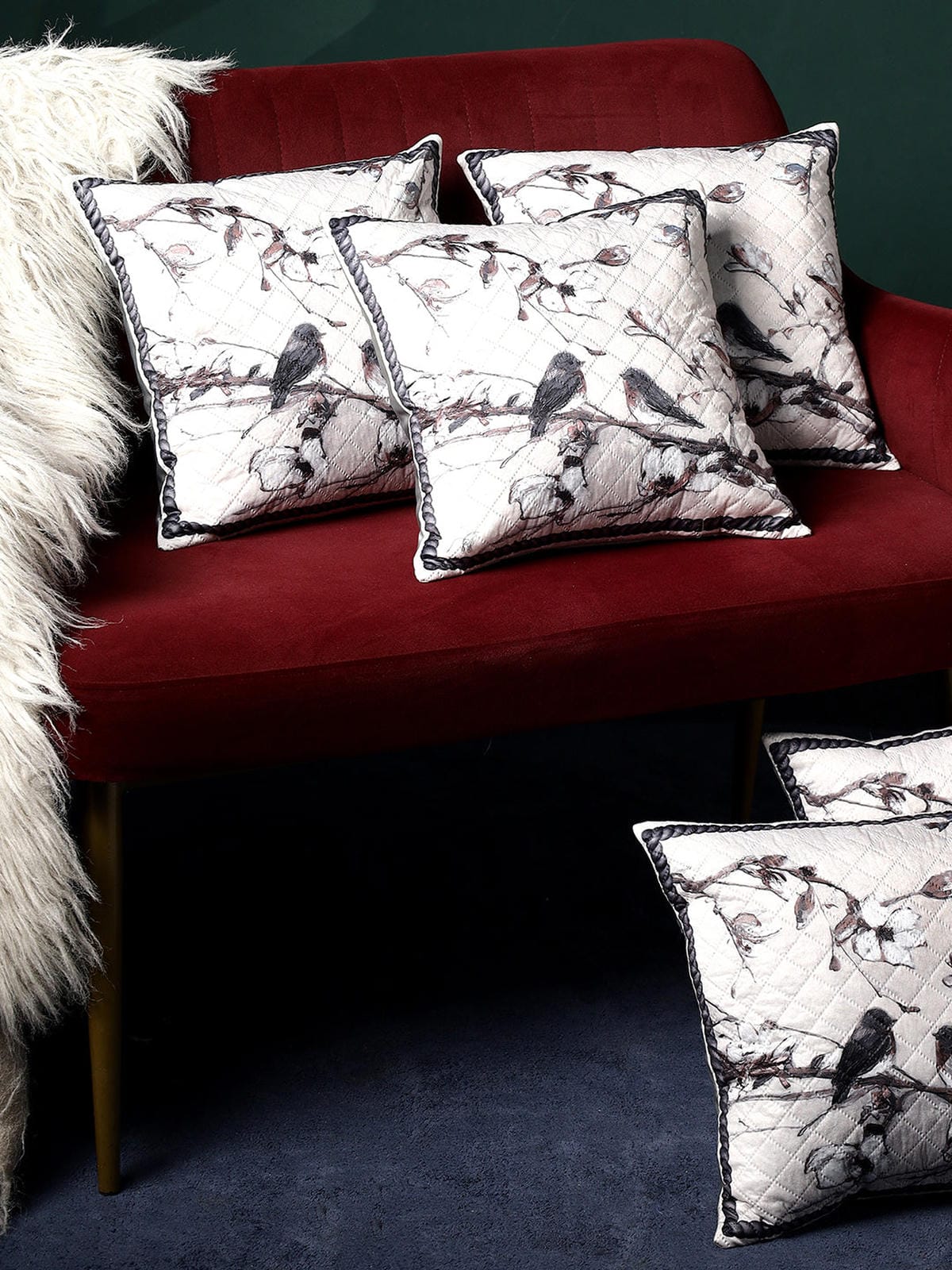 Birdsong & Blossoms Design– Premium Quilted Cushion Cover – 16 x 16 inches