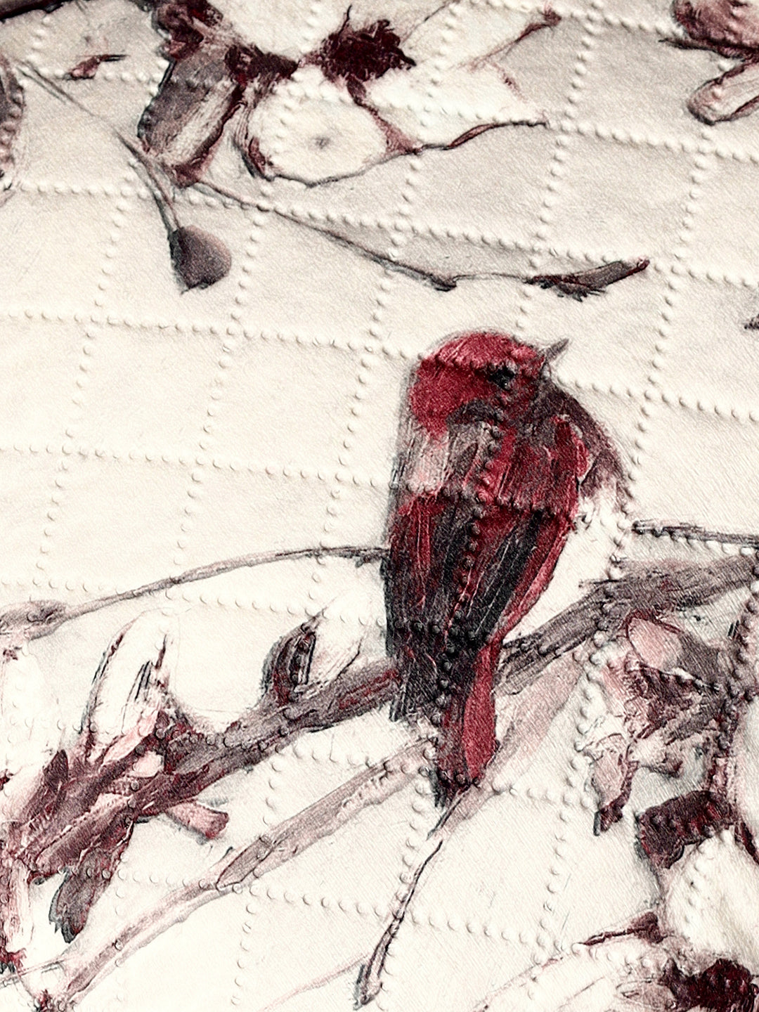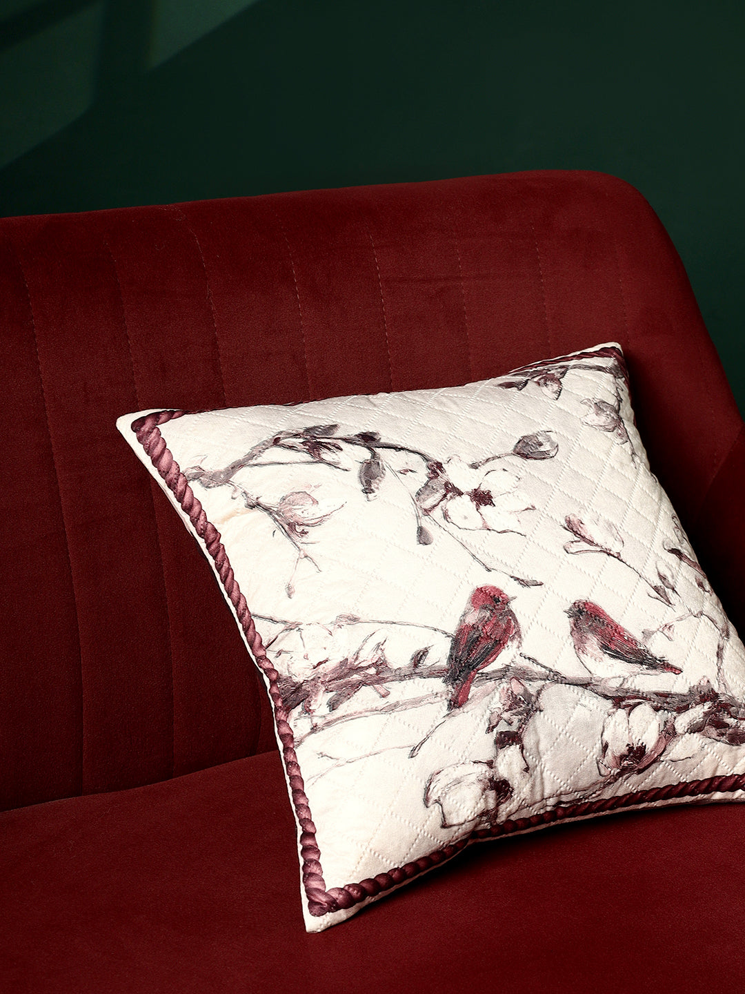 Infuse your home with the gentle charm of nature with our 16 x 16 inches ” Blossom & Birds Cushion. This design captures a serene moment—two delicate red-breasted birds perched on blossoming branches, surrounded by soft white and blush-toned flowers. The artwork is set against a subtle quilted background, adding depth, texture, and an inviting feel to your décor.