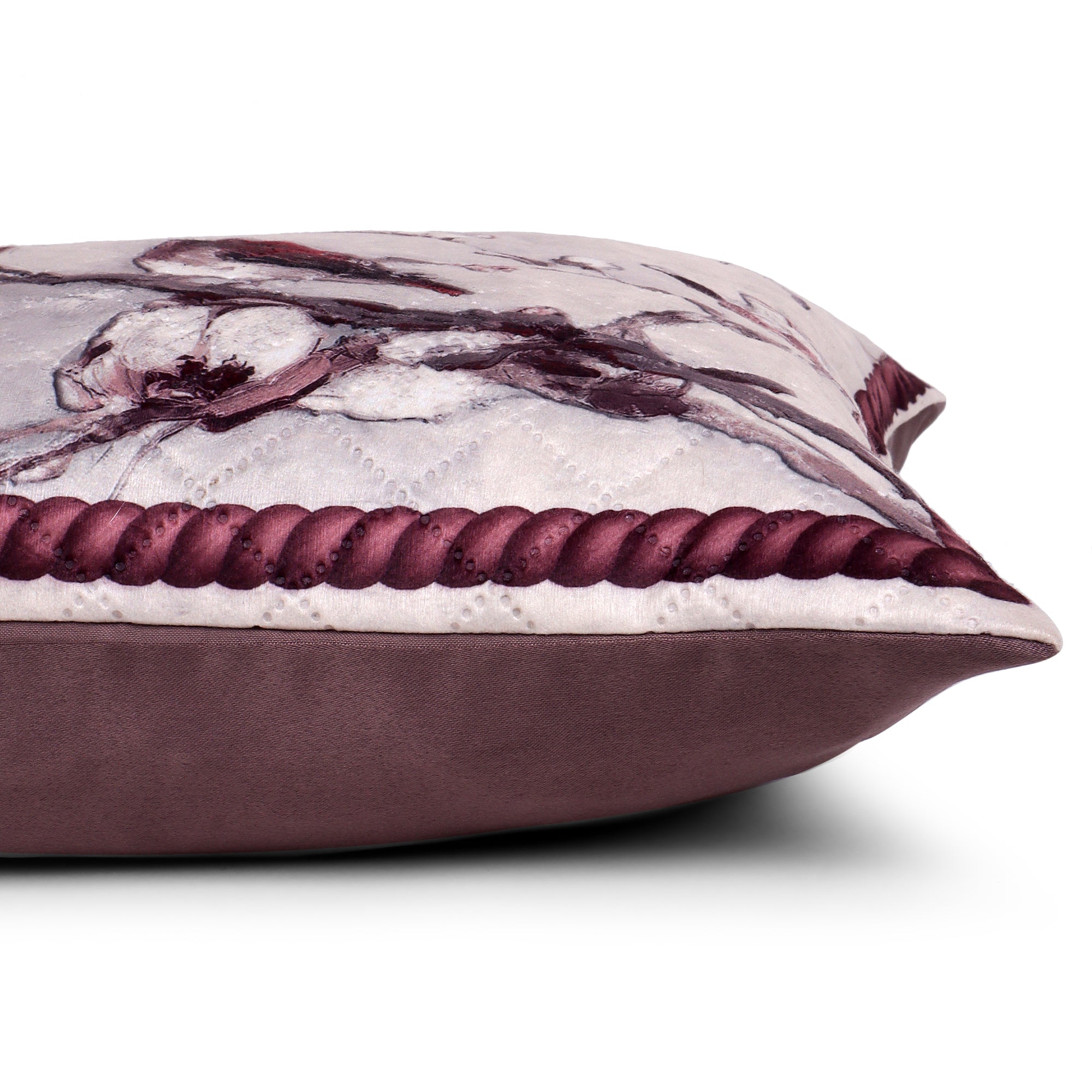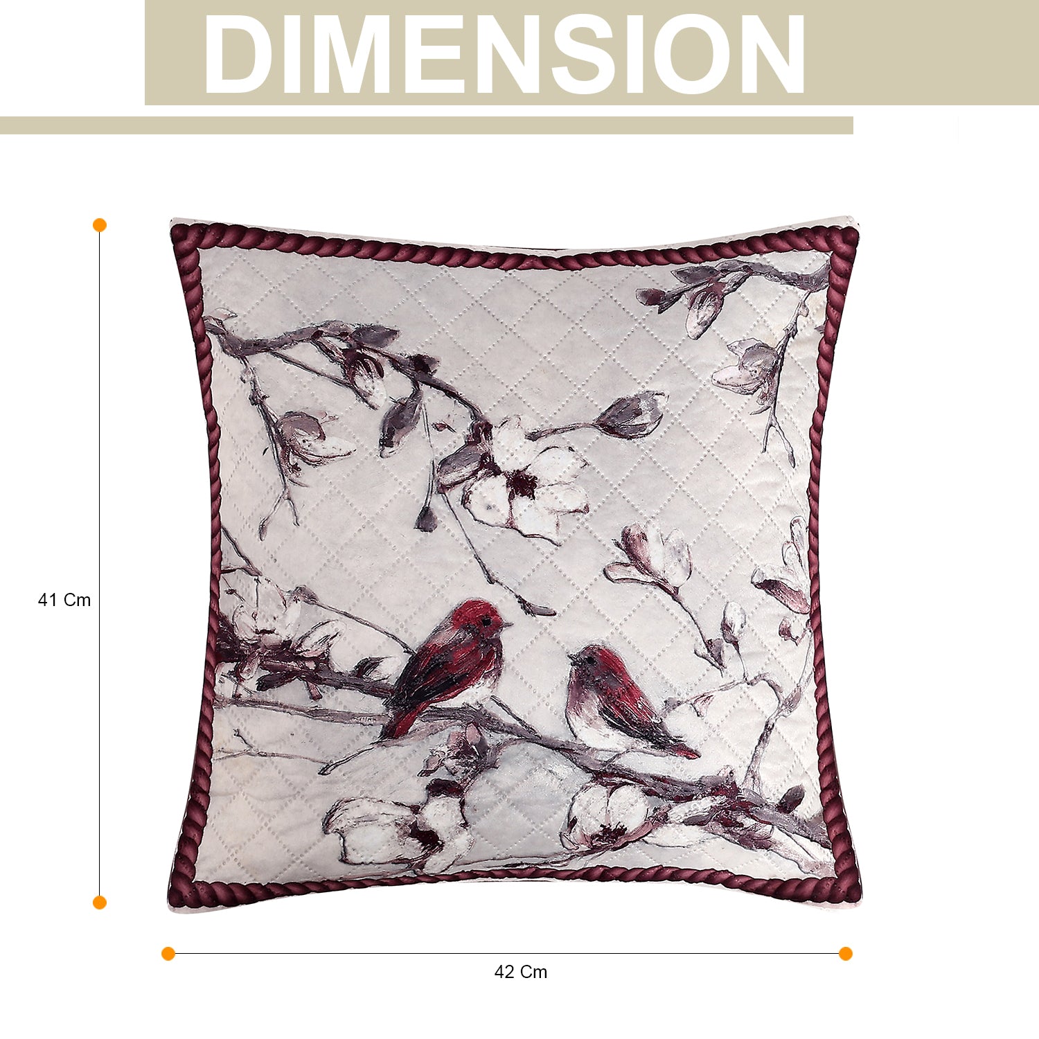 Framed with an elegant maroon rope border, this cushion blends rustic beauty with timeless sophistication. Crafted from premium fabric with plush filling, it provides both comfort and style, making it perfect for a sofa, armchair, reading nook, or bedroom.