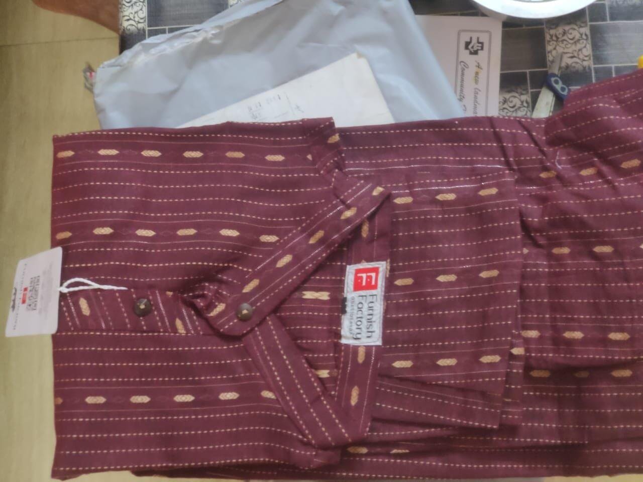 Make a regal statement with the Royal Plum Woven Cotton Kurta, where traditional craftsmanship meets modern grace. This striking kurta comes in a rich plum purple hue, beautifully enhanced with golden woven motifs and delicate vertical thread lines. Made from soft, breathable cotton, it ensures comfort through long festive hours or cultural gatherings. The Mandarin collar and half-button placket lend a clean, classic look, while the chest pocket adds everyday practicality. Whether for festive celebrations, evening functions, or traditional get-togethers, this kurta adds sophistication and vibrant charm to your ethnic wardrobe.