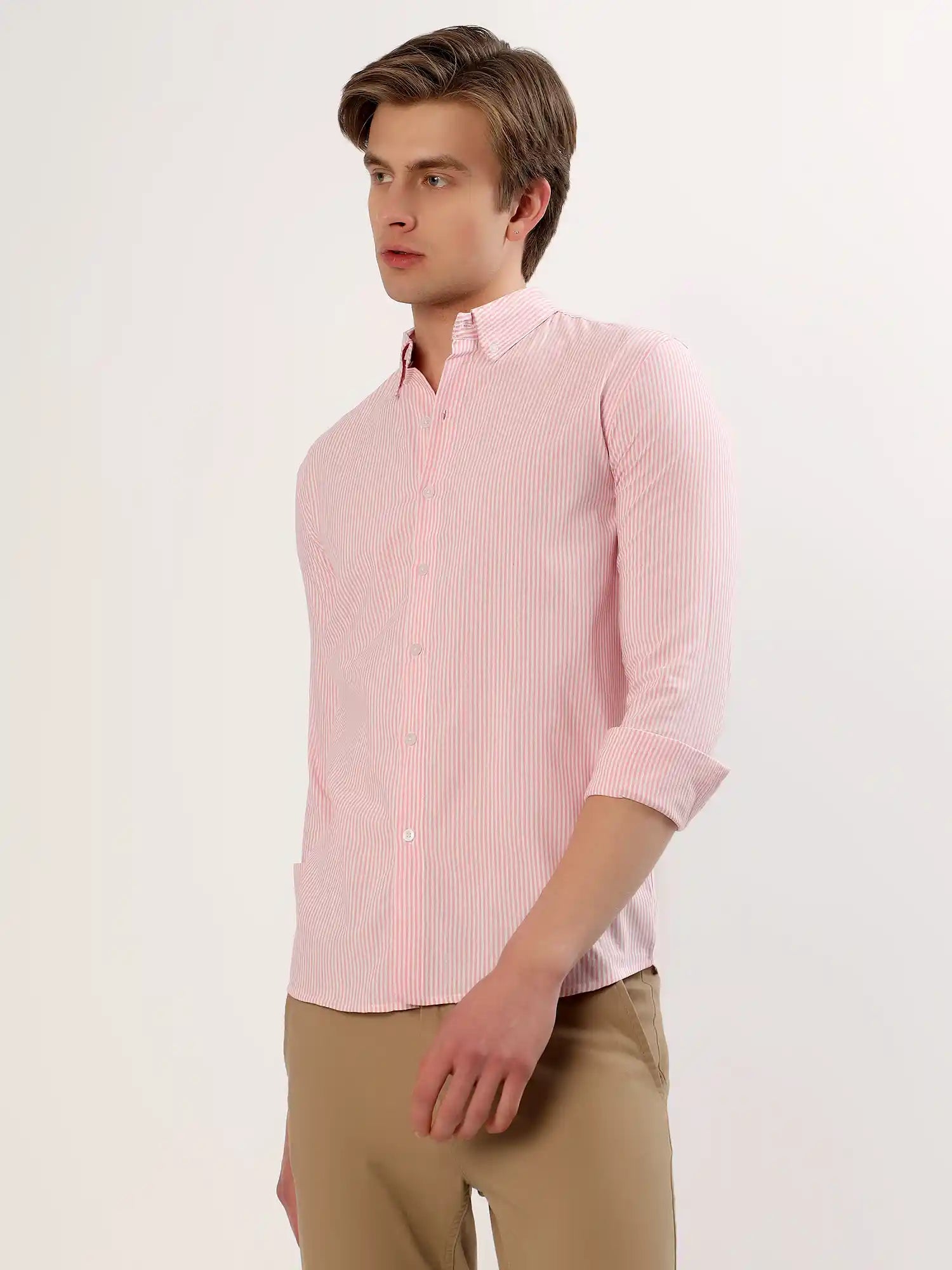 · Upgrade your everyday style with our Cherry Blossom Stripe Classic Shirt designed for men who appreciate subtle and timeless elegance. Crafted from premium-quality cotton fabric, this shirt features fine vertical stripes in soothing pink tone that create a clean, structured, and refreshing look.