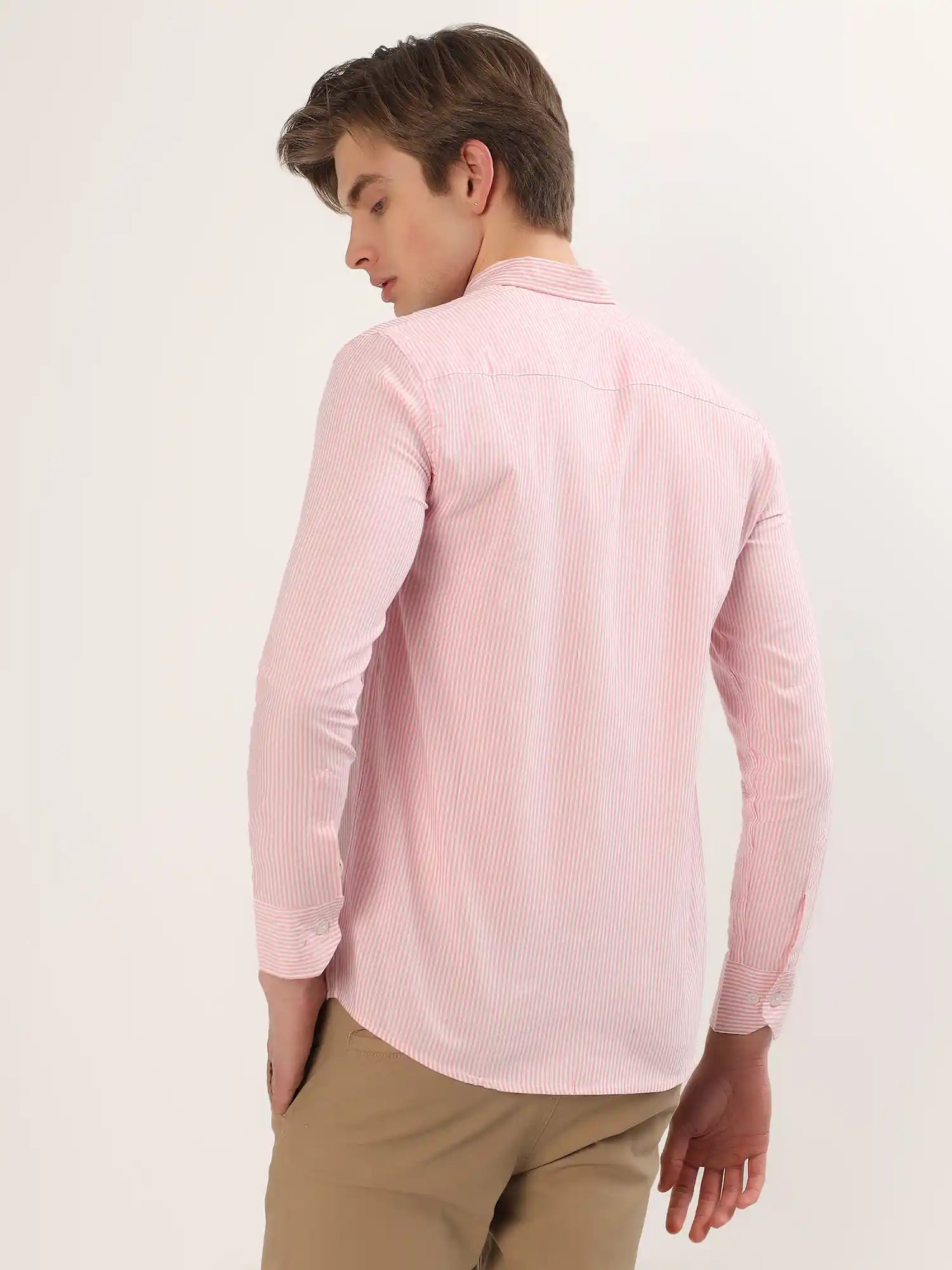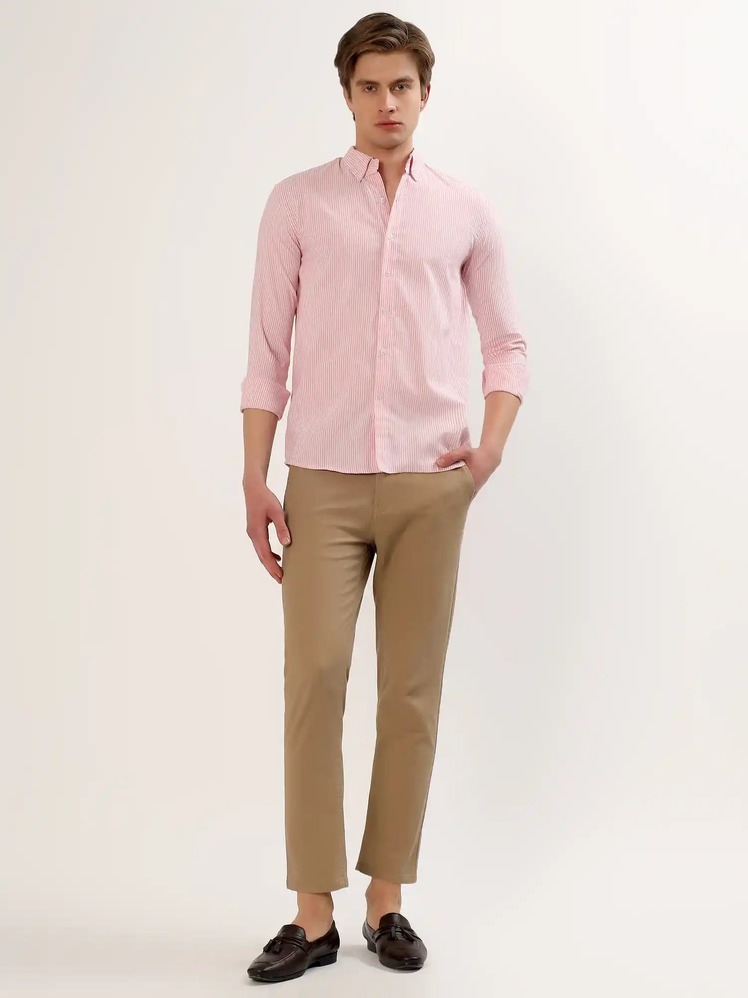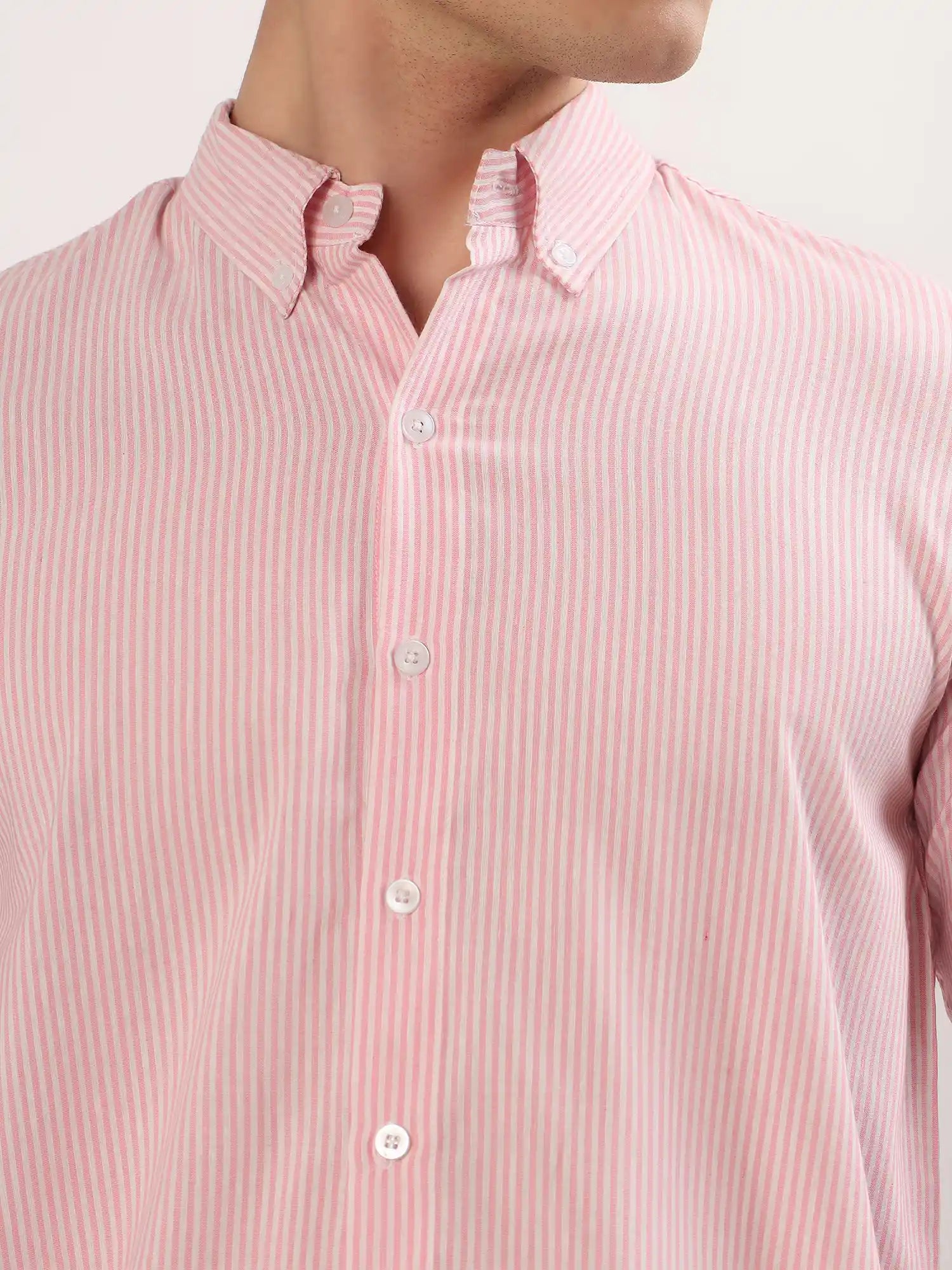 · The breathable cotton fabric ensures all-day comfort, making it ideal for office wear, formal meetings, and smart casual occasions. Its smooth Feel, classic collar, and refined stitching add a polished finish, while the vertical stripe pattern enhances the overall silhouette.