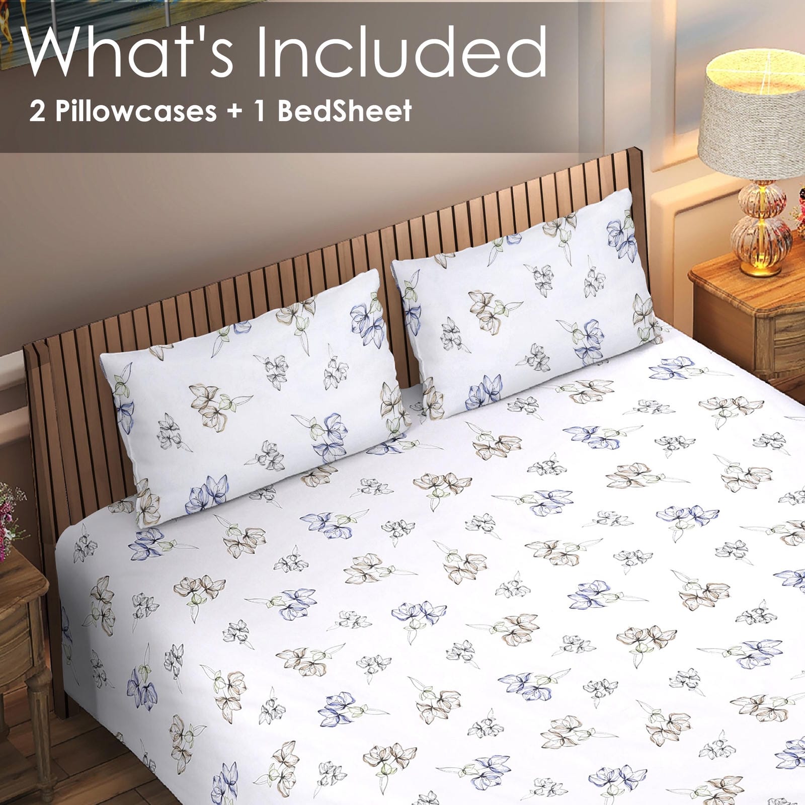 • Contents: 1 Bedsheet + 2 Pillow Covers