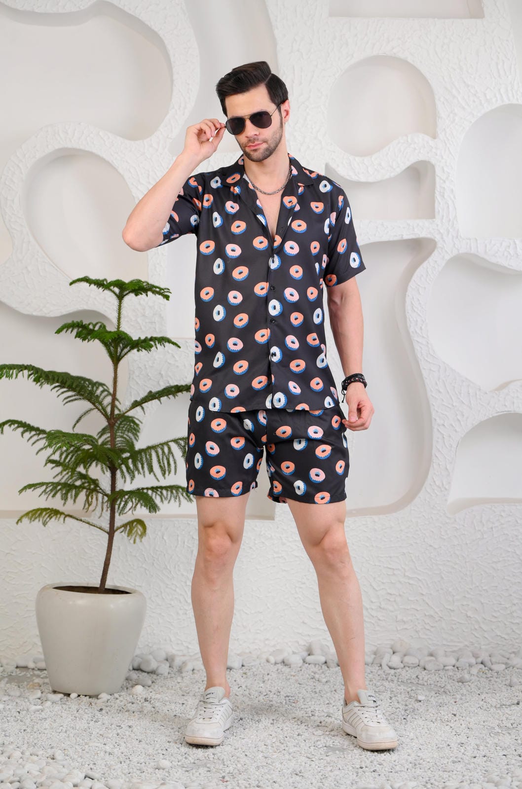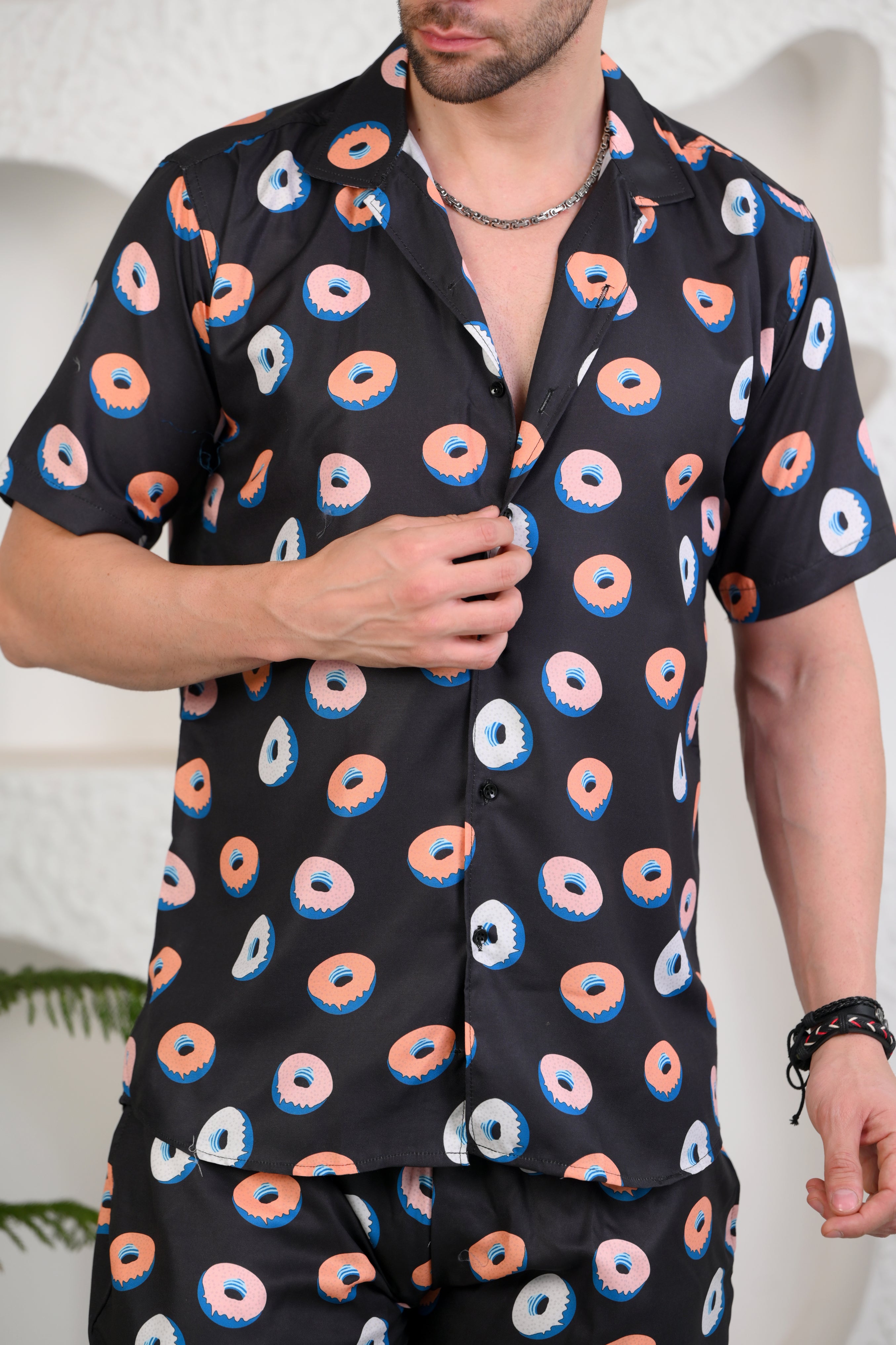 Make an impact with the Donutonic Black Printed Co-ord Set, featuring a striking all-over print on a sleek black base. Designed with a short-sleeved Cuban collar shirt and matching relaxed-fit shorts, this set exudes urban cool with a touch of playful energy. The lightweight, breathable fabric ensures maximum comfort, making it ideal for casual outings, vacations, or statement streetwear. Whether you're dressing up or keeping it casual, this co-ord set is the perfect blend of style, comfort, and individuality.