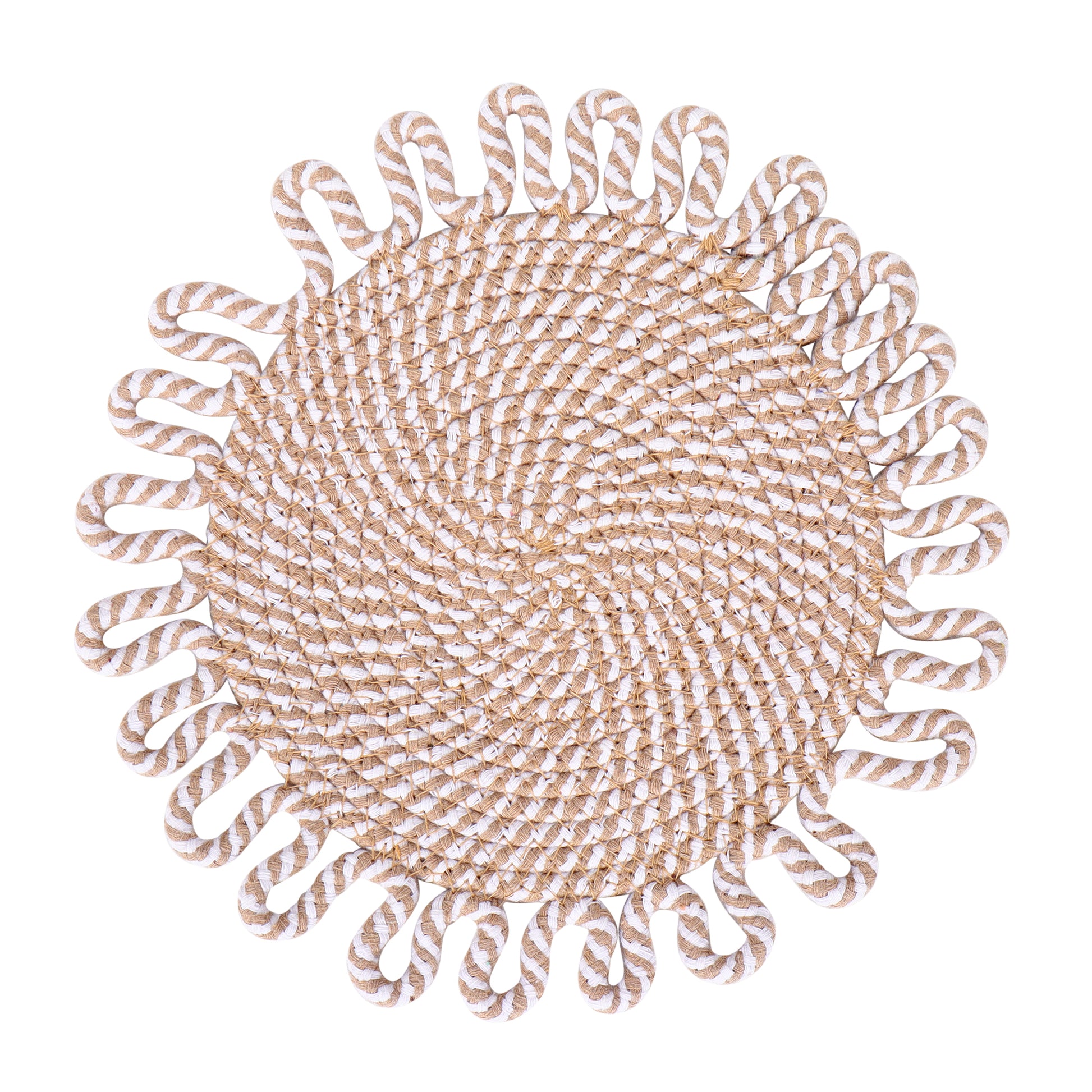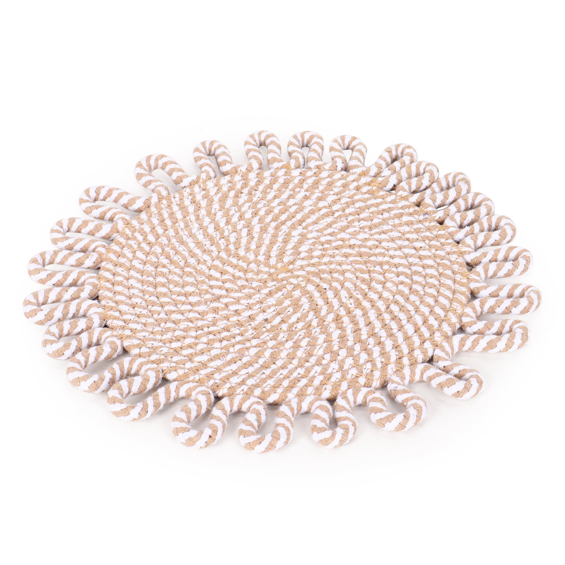 · These beautiful Braided Mats will add texture and interest to your table. Framing plates with color and texture as they catch drips and crumbs saving your tablecloth from stains Spot cleaning will extend the live of jute.