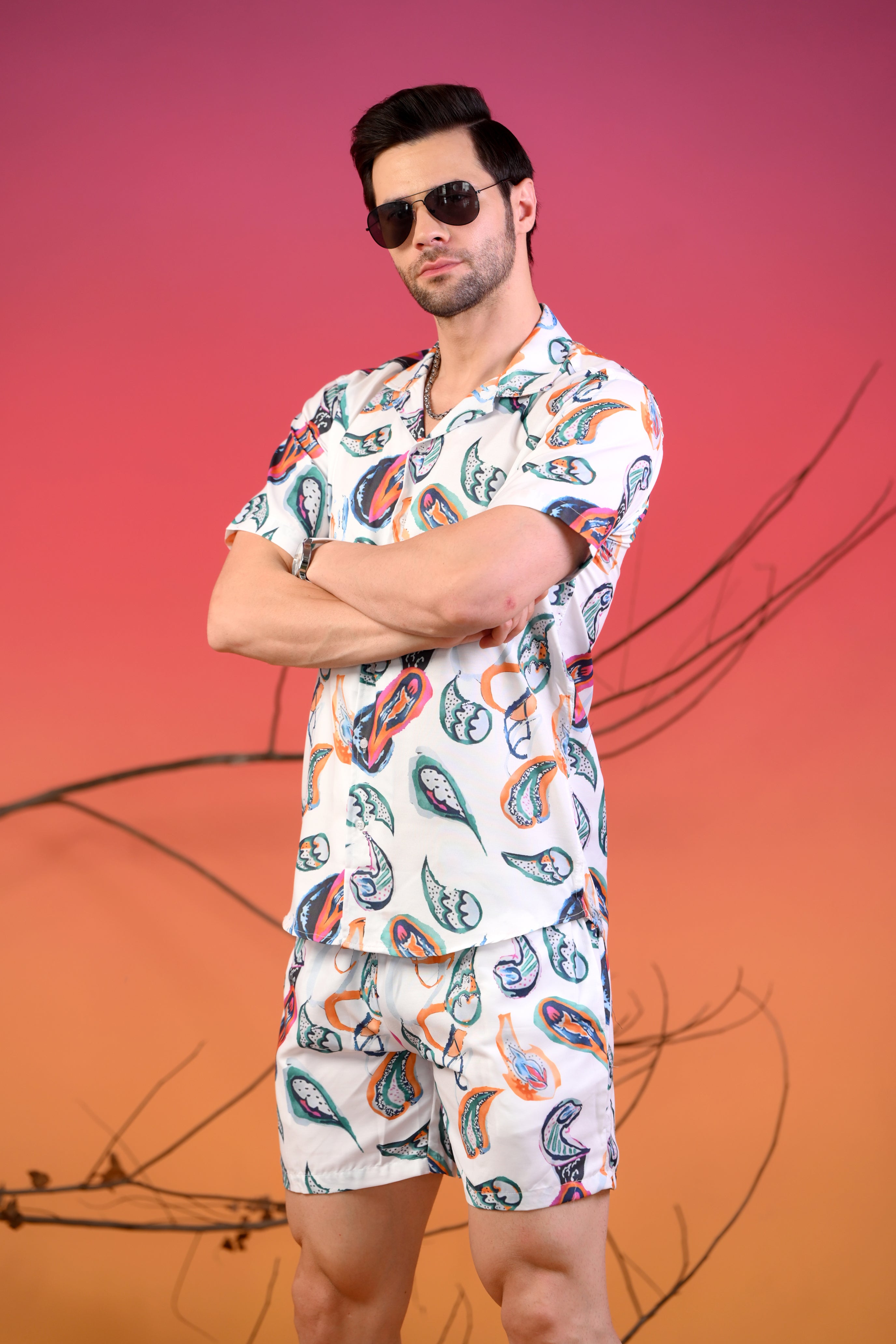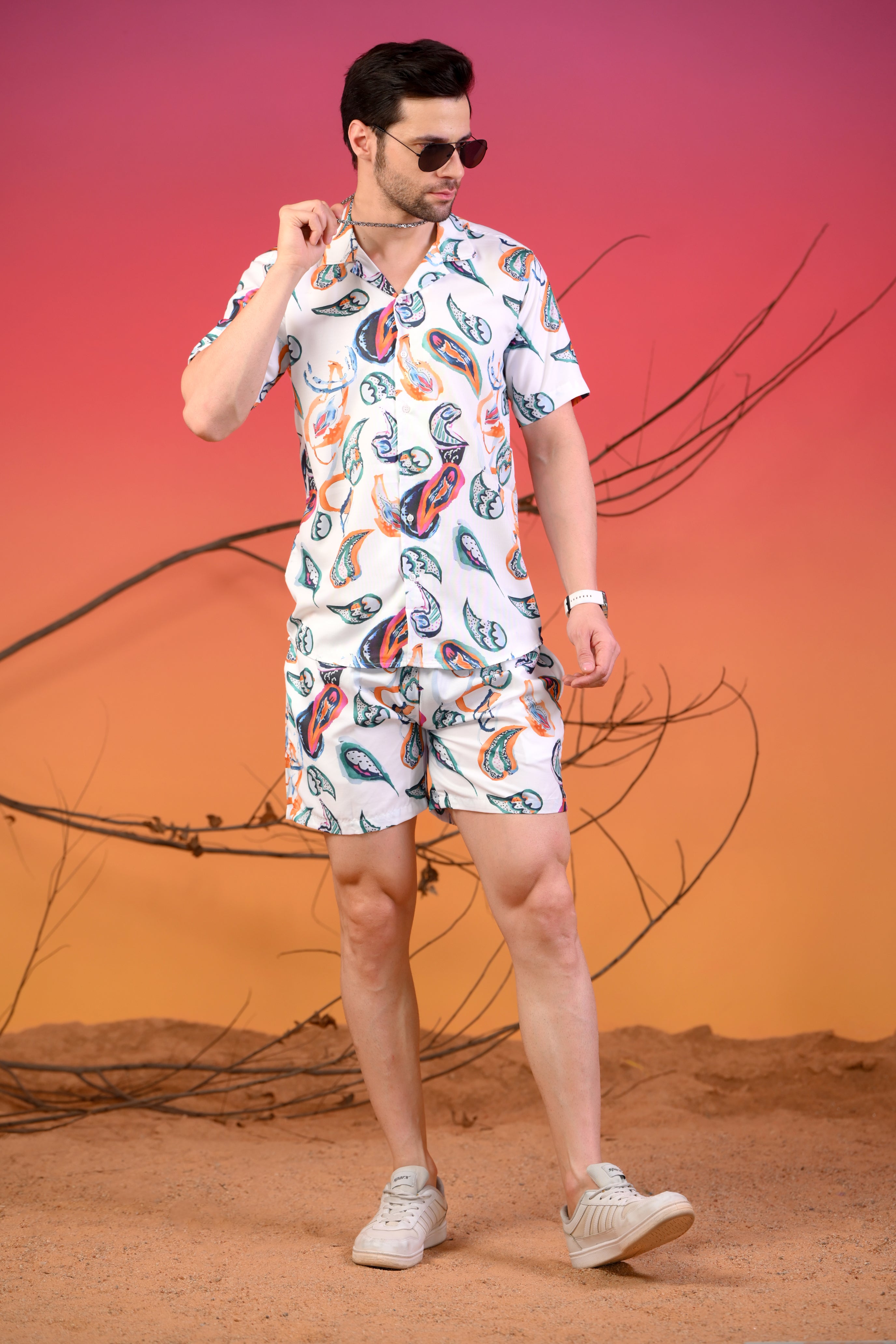 ✅ Coordinated Set – A matching Cuban collar shirt and shorts for a seamless, well-put-together outfit.