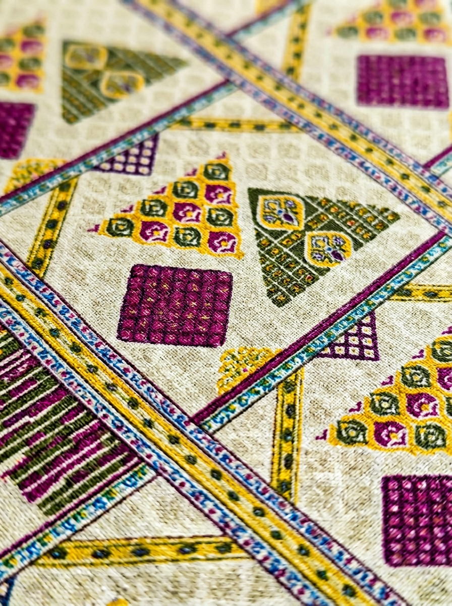• Design: Ethnic Triangle Pattern with Stripe Detailing