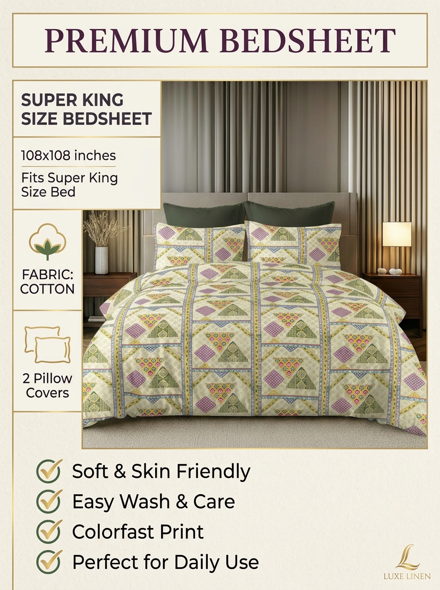 • Product Name: Jaipuri Olive Prism Premium Bedsheet