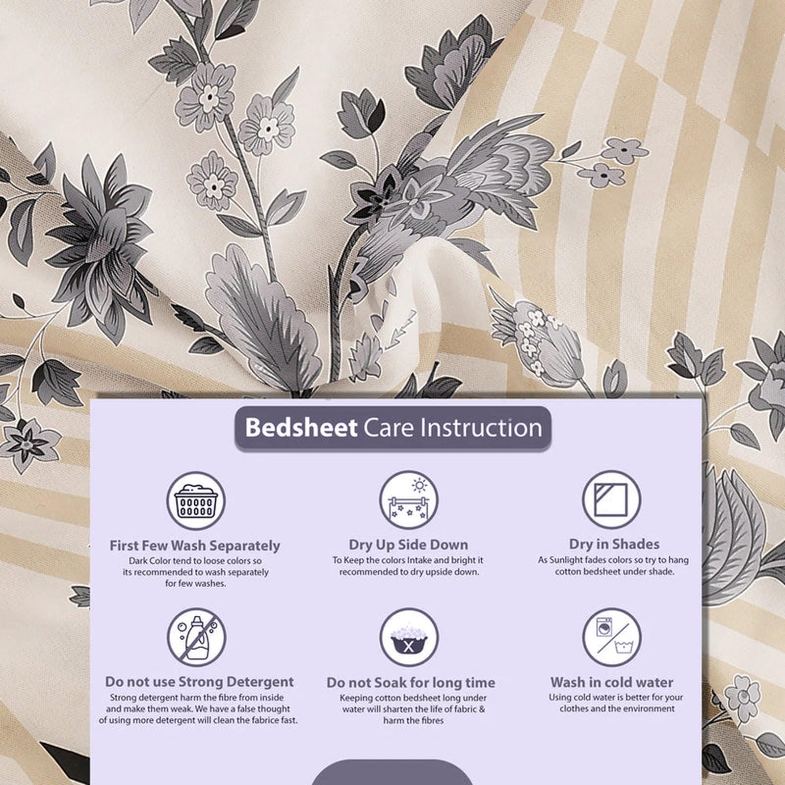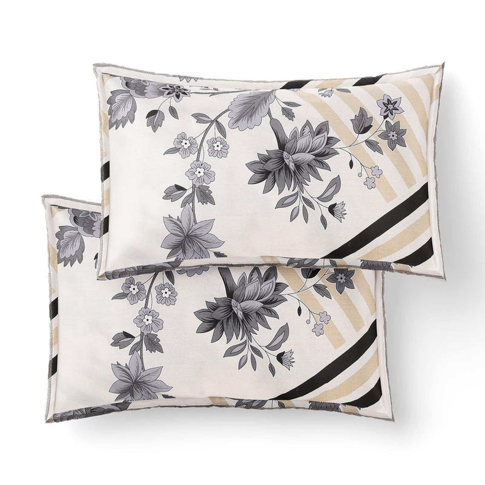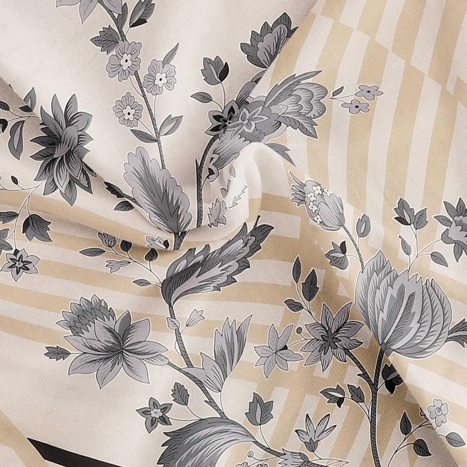 Bring home the perfect blend of modern elegance and timeless charm with our Kesar Rang Bedsheet. Designed with a soothing beige base, bold geometric stripes, and intricately detailed leaf motifs in soft grey, this piece transforms your bedroom into a space of refined beauty.