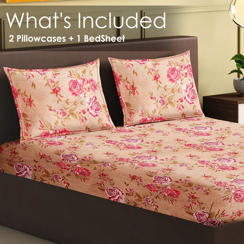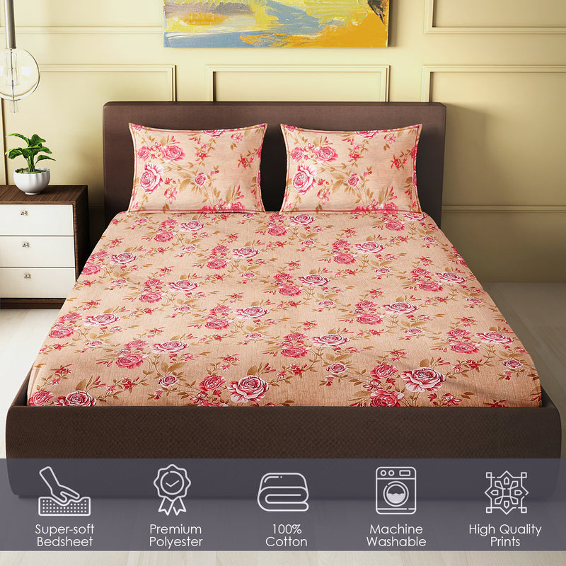 Bring home the beauty of nature with this elegant bedsheet featuring blooming rose patterns on a soft beige backdrop. Designed to add warmth and charm to your bedroom, this bedsheet combines comfort with timeless floral elegance. Perfect for everyday luxury, it enhances your space with a refreshing, garden-inspired look.