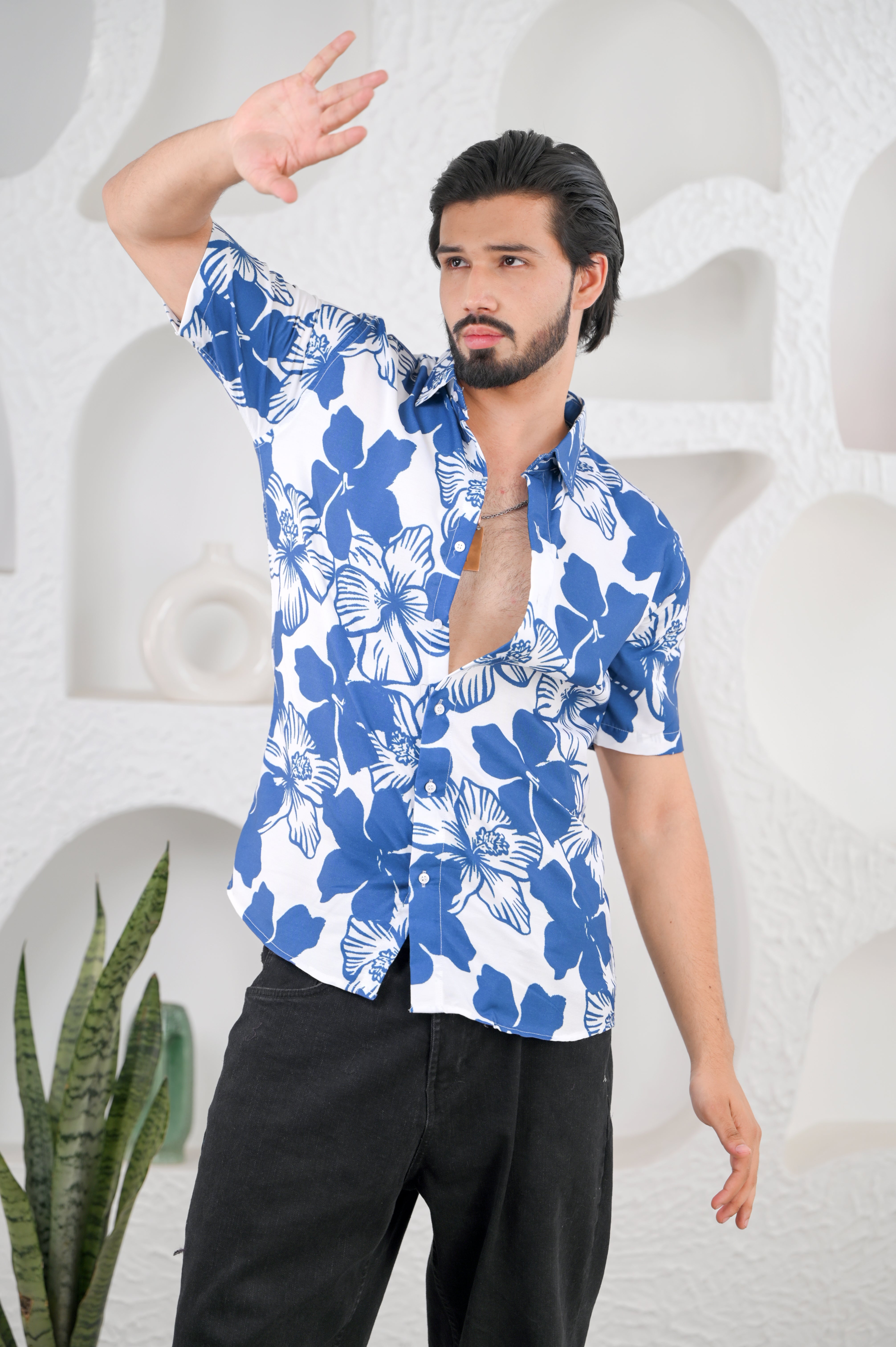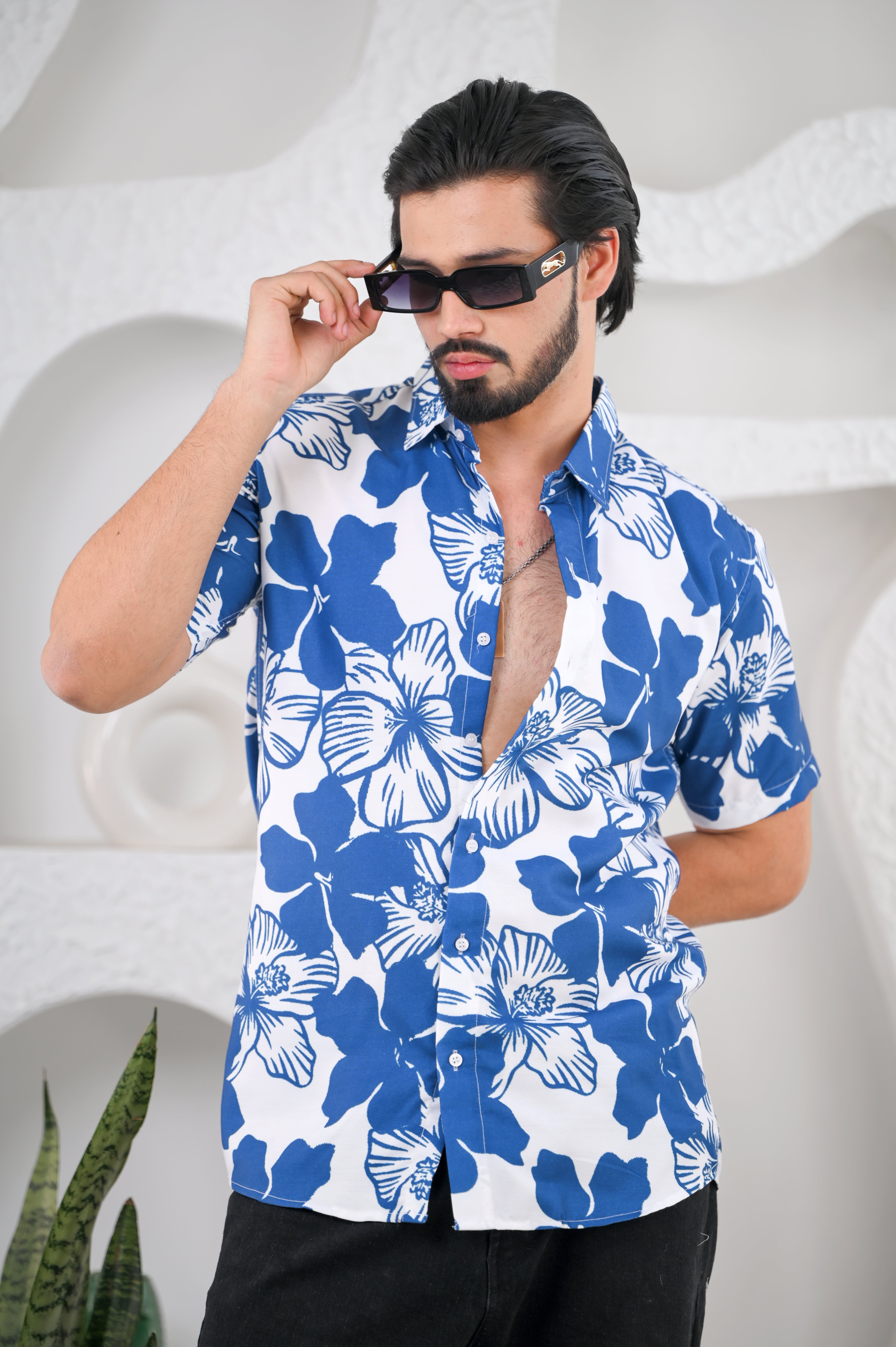 Draped in premium rayon fabric, its silky-smooth texture flows like the tides, offering a lightweight, breathable feel that keeps you cool and comfortable. The blue floral print, reminiscent of a tranquil island escape, transforms every wear into a moment of pure relaxation. Whether you're strolling by the shore, unwinding at a summer soirรฉe, or embracing the laid-back elegance of everyday life, this shirt is your perfect companion.