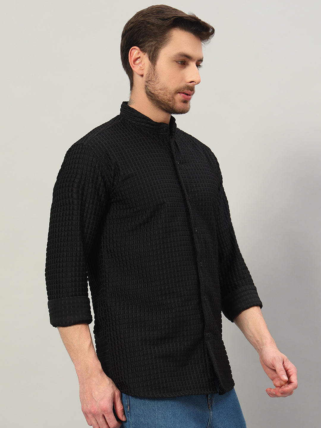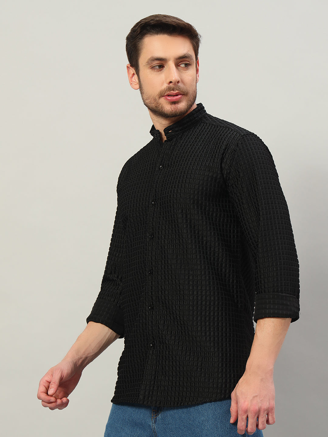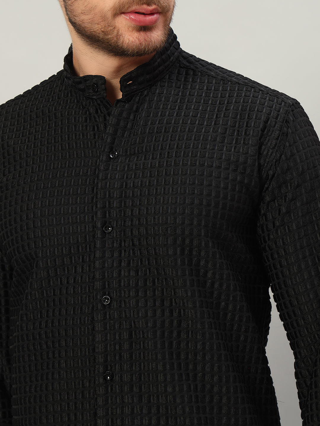 A must-have wardrobe staple, the Black Mandarin Collar Shirt ensures a sleek and sophisticated look that pairs seamlessly with any ensemble.