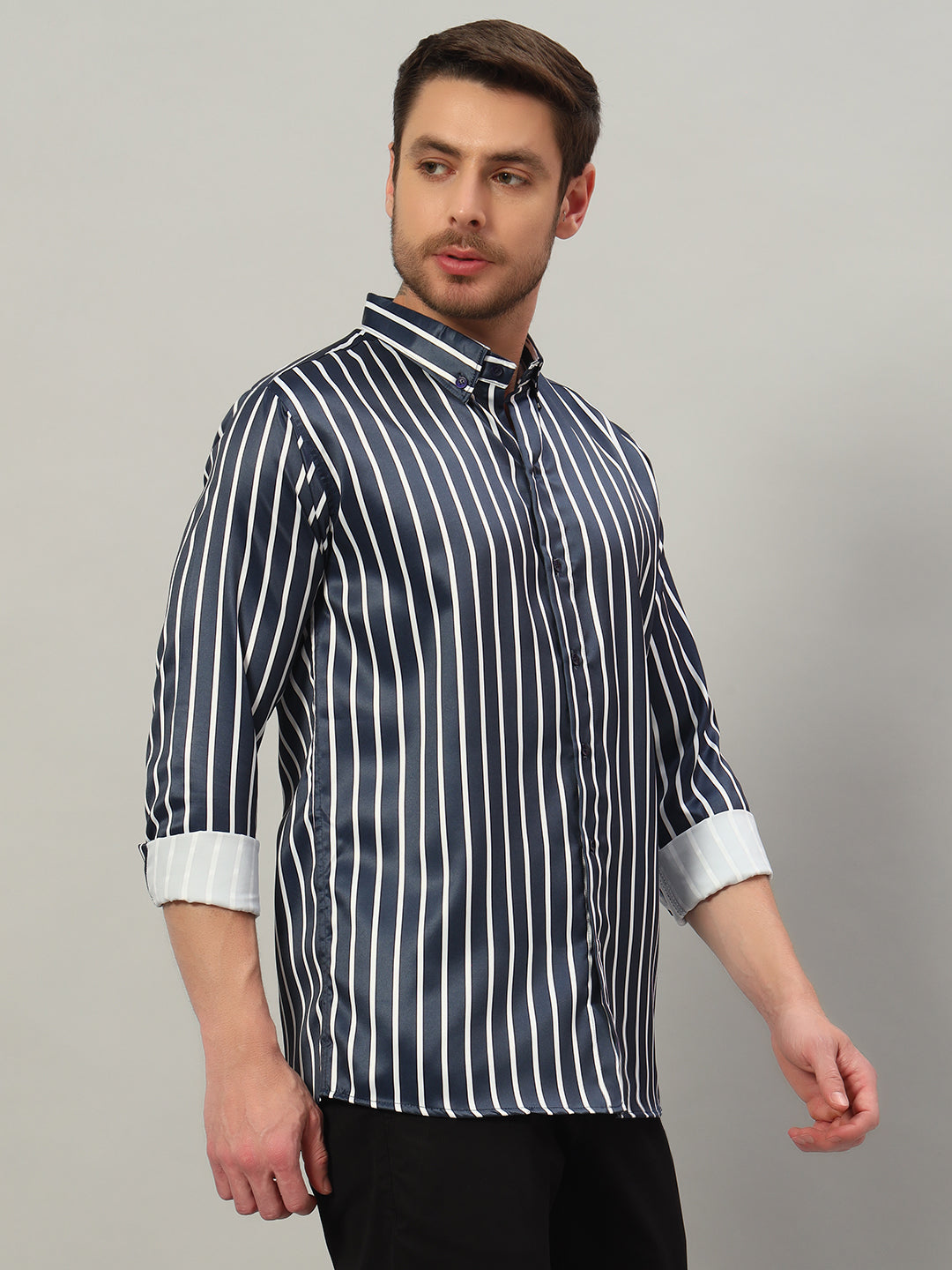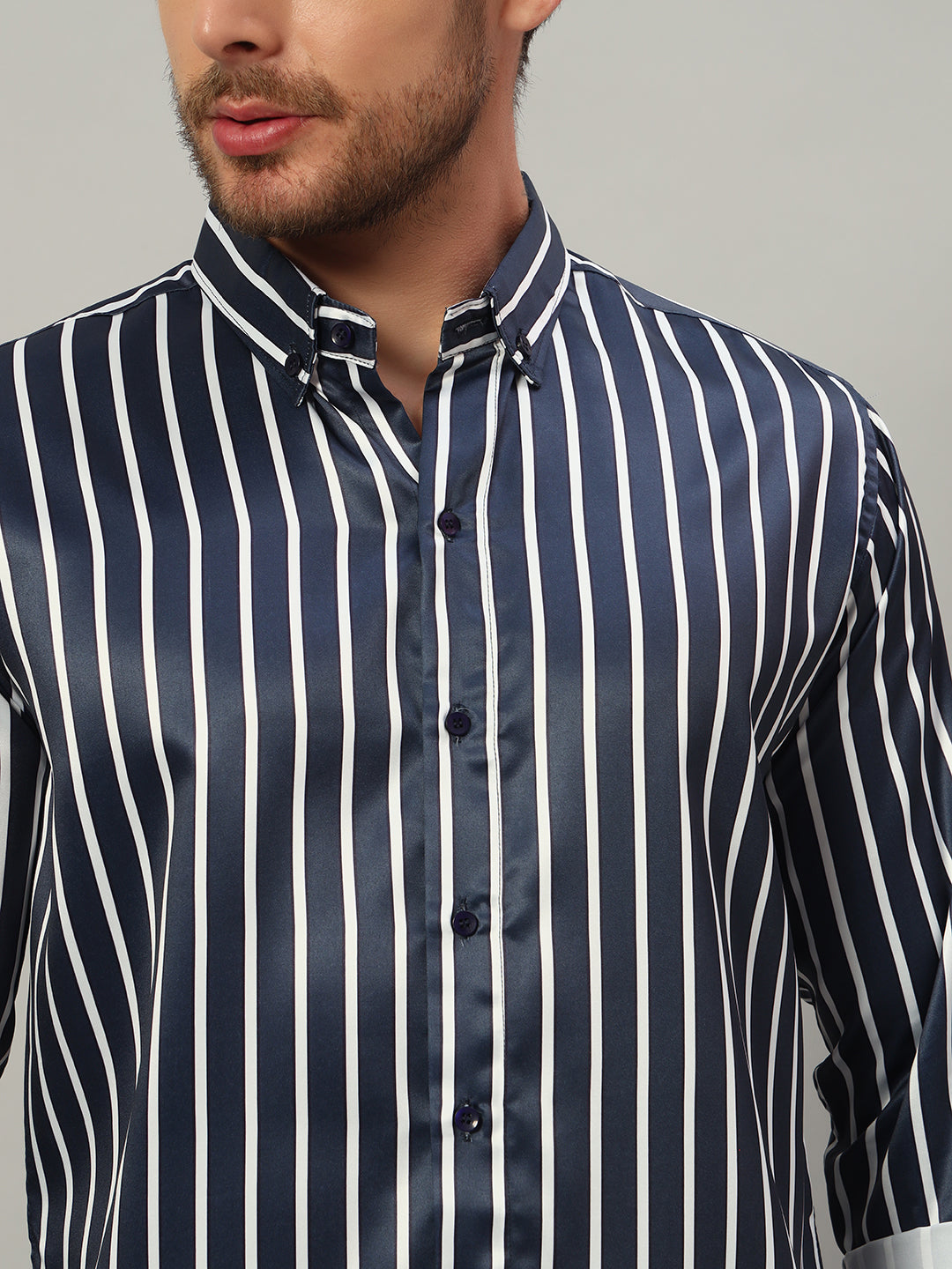 Classic and versatile, the Blue Striped Satin Cotton Shirt offers a polished look perfect for work and casual outings.