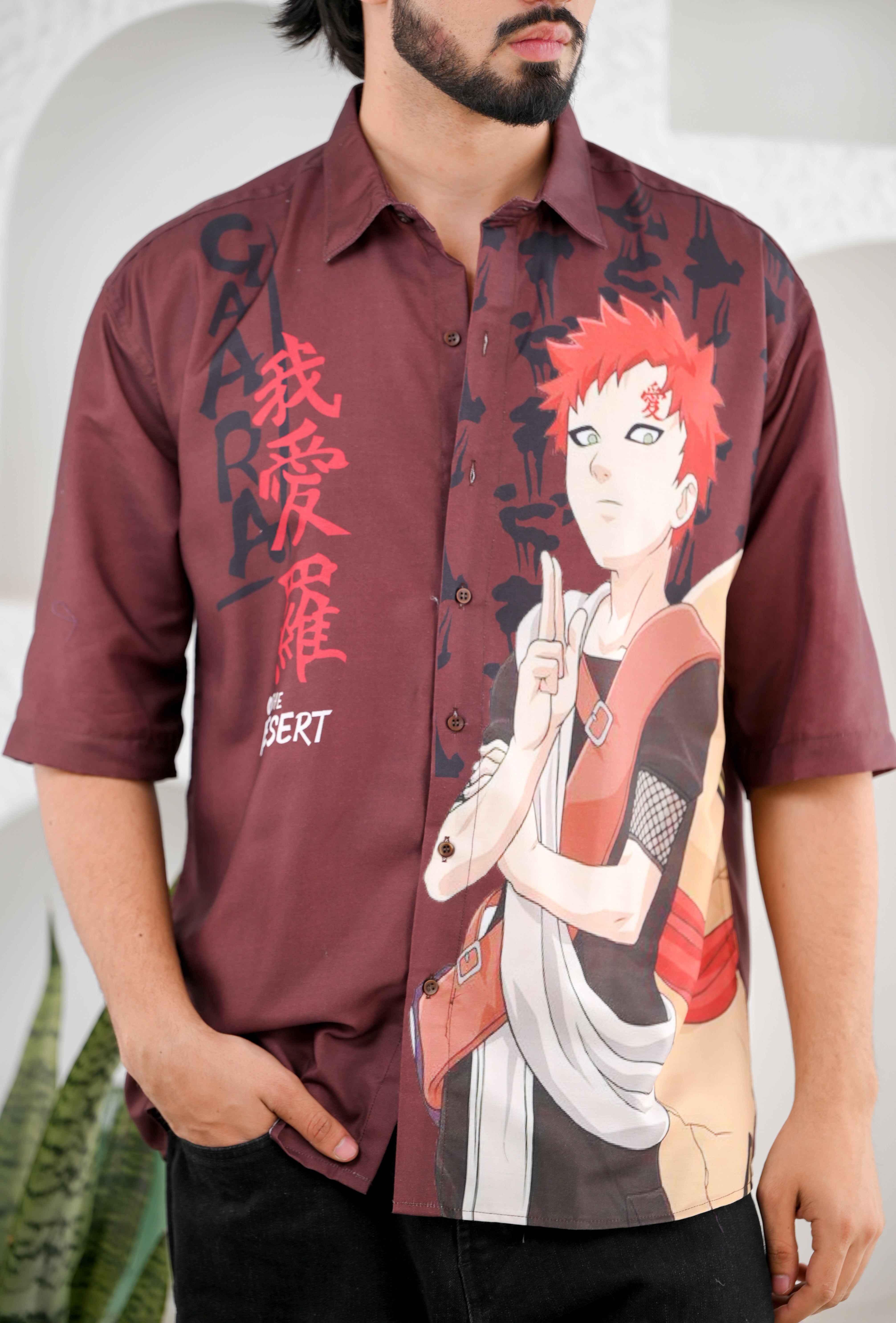 Experience laid-back luxury. Our Brown Oversized Reyon Shirt features a unique cartoon graphic, blending comfort with standout style.