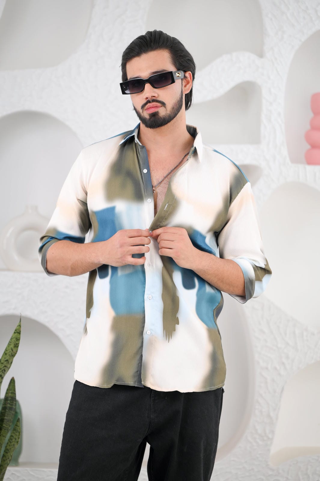 Prepare for a visual rush with the Green & Blue Digital Print Shirt. This isn't your average shirt; it's a digital masterpiece splashed across premium fabric.Crafted with cutting-edge digital printing, the vibrant colors stay sharp wash after wash. Whether you're hitting the streets, attending a festival, or just want to make a bold statement, this shirt is your ultimate style weapon. Get ready to turn heads and ignite your style.