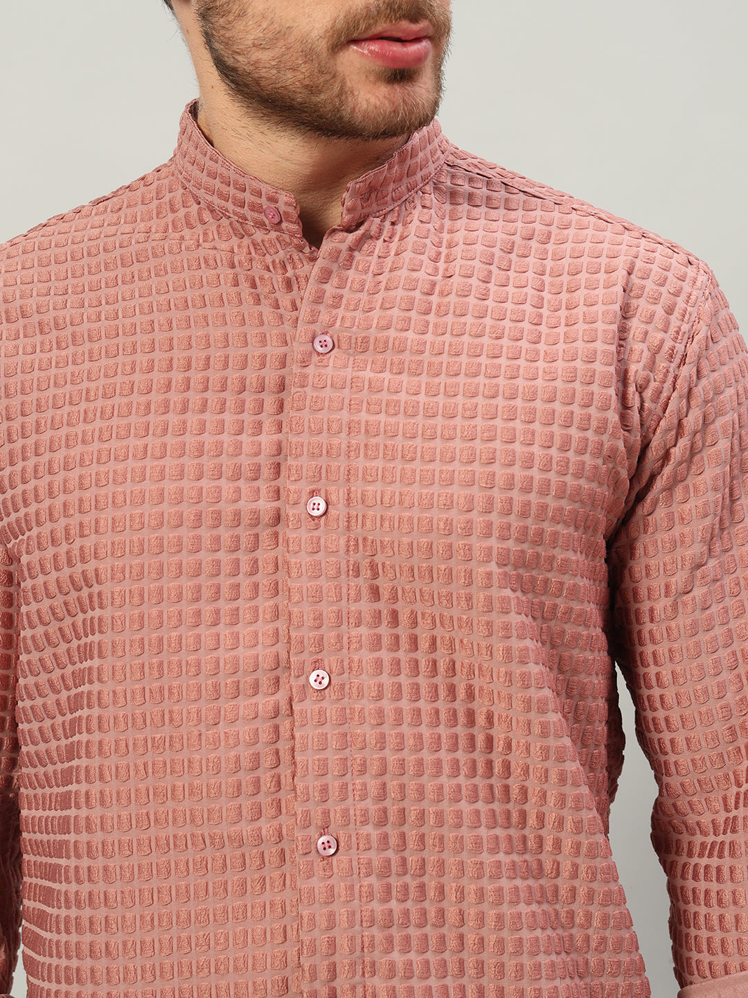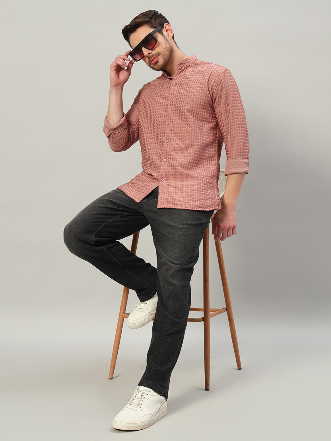 A timeless addition, the Old Rose Mandarin Collar Shirt offers a soft, refined look perfect for both casual and semi-formal occasions.