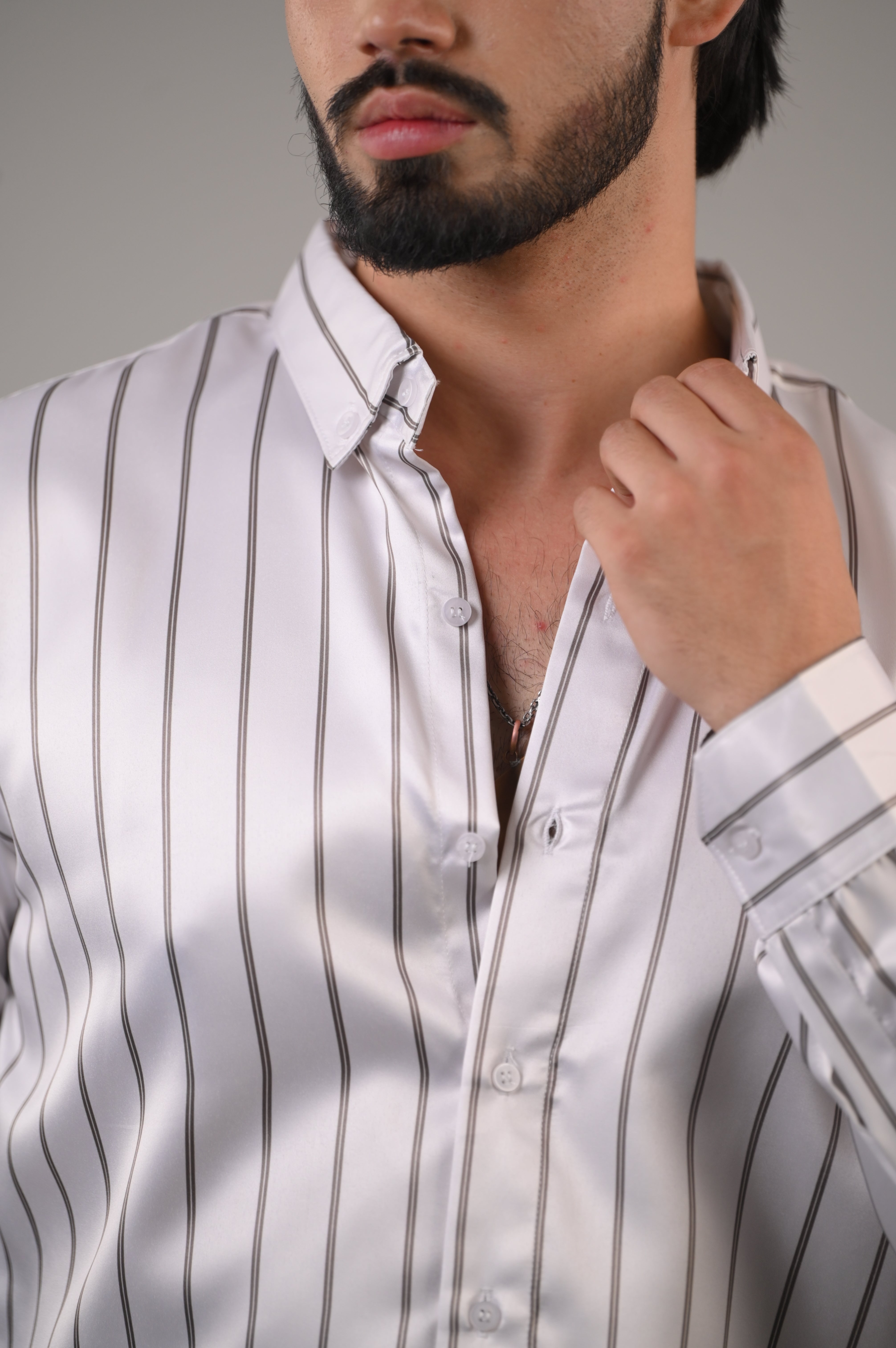 Elevate your wardrobe with timeless elegance and contemporary style with our Men's White Striped Premium Satin Cotton Shirt. Crafted from high-quality satin cotton, this shirt offers the perfect blend of sophistication and comfort, making it ideal for both formal events and refined everyday wear.