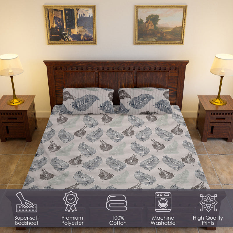 Bring nature’s calm into your bedroom with our Neelpatra Vibes Bedsheet, a perfect blend of simplicity and sophistication. Designed with graceful leaf motifs in subtle grey and blue shades, this bedsheet exudes a breezy, refreshing charm that instantly uplifts your space.