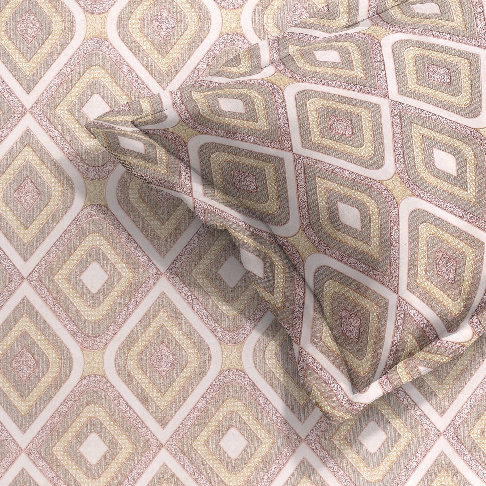 Enhance your bedroom décor with the timeless charm of our Regal Diamond Cotton Bedsheet, crafted in a comfortable 108*100 size. This premium bedsheet features an elegant geometric diamond pattern inspired by classic jacquard artistry, creating a rich and sophisticated visual appeal.