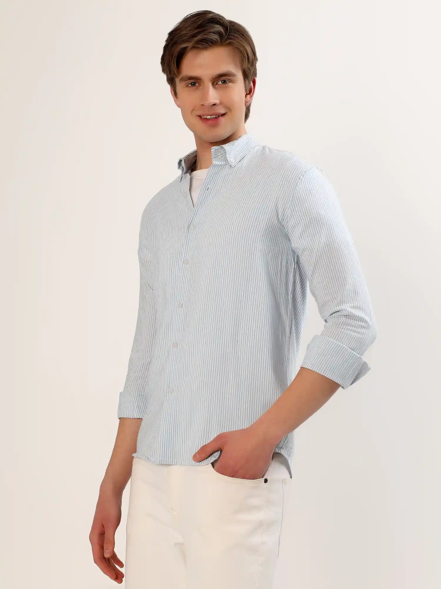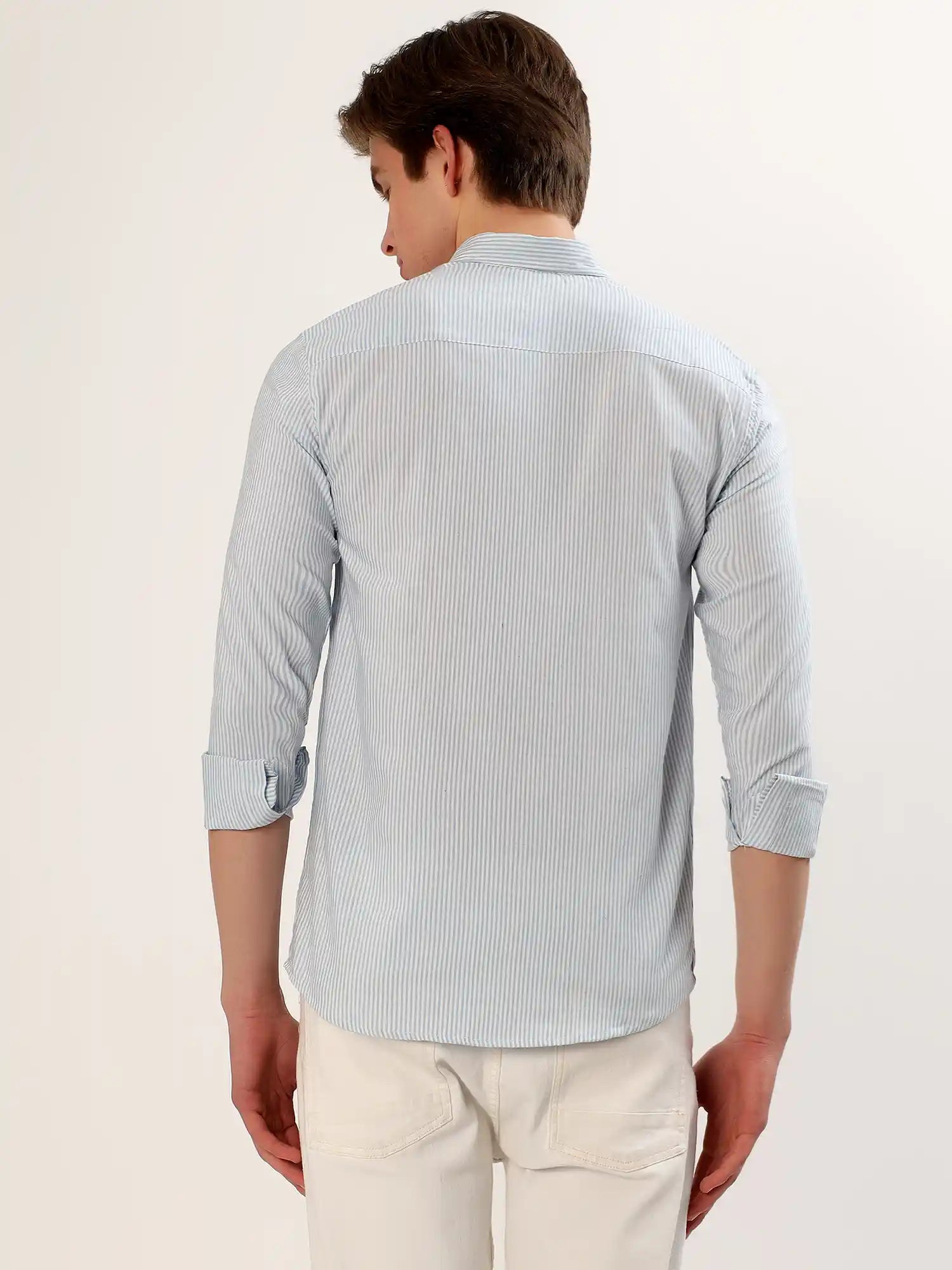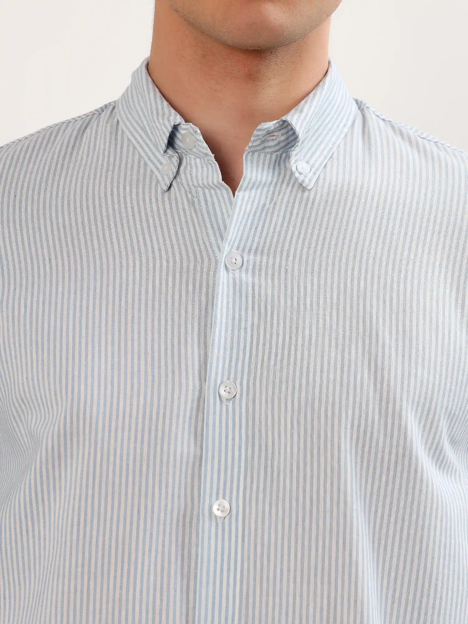 · Upgrade your everyday style with our Sky Blue Stripe Classic Shirt, designed for men who appreciate subtle and timeless elegance. Crafted from premium-quality cotton fabric, this shirt features fine vertical stripes in soothing sky-blue tone that create a clean, structured, and refreshing look.