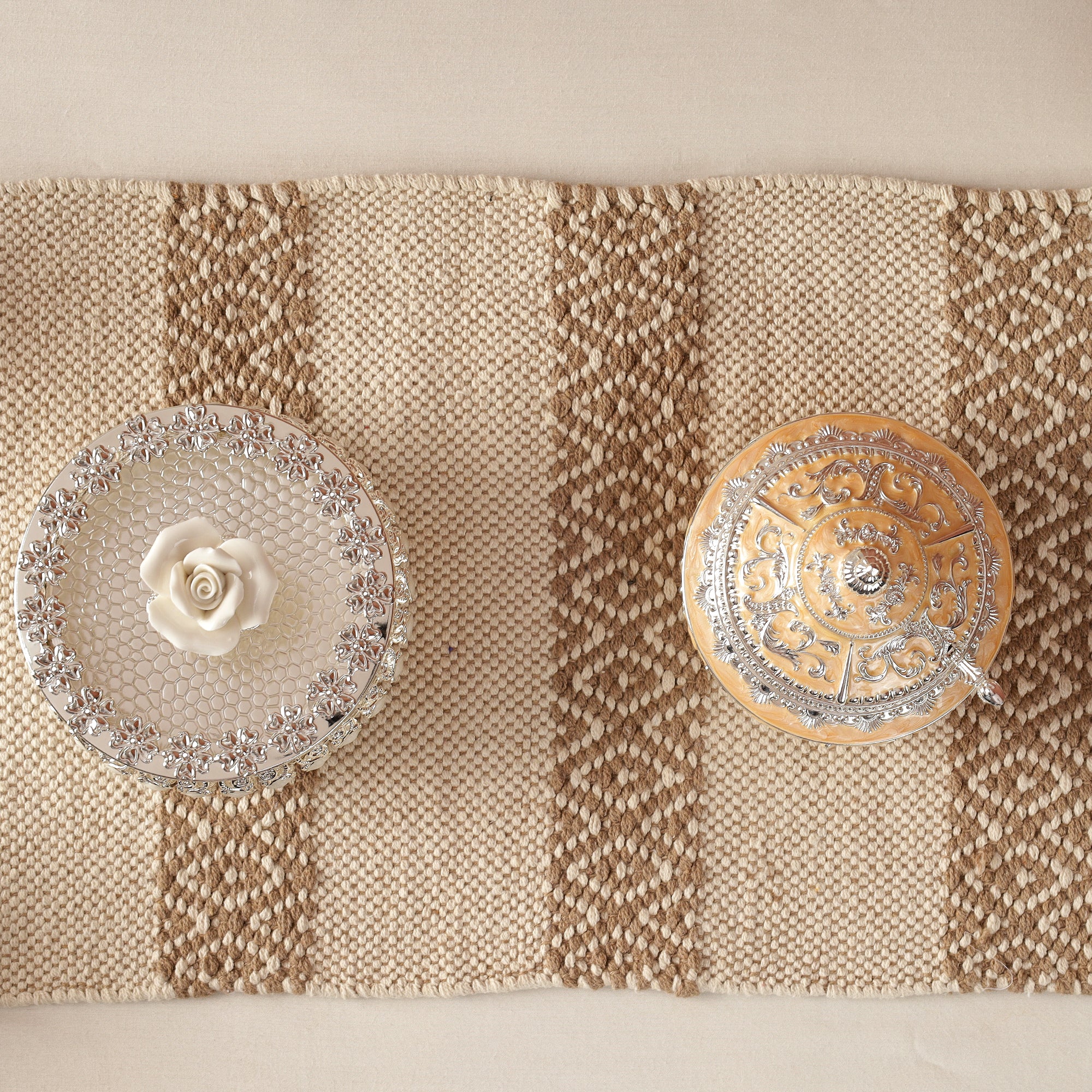 Soft knitted Beige Table Runner with tint of brown thread |