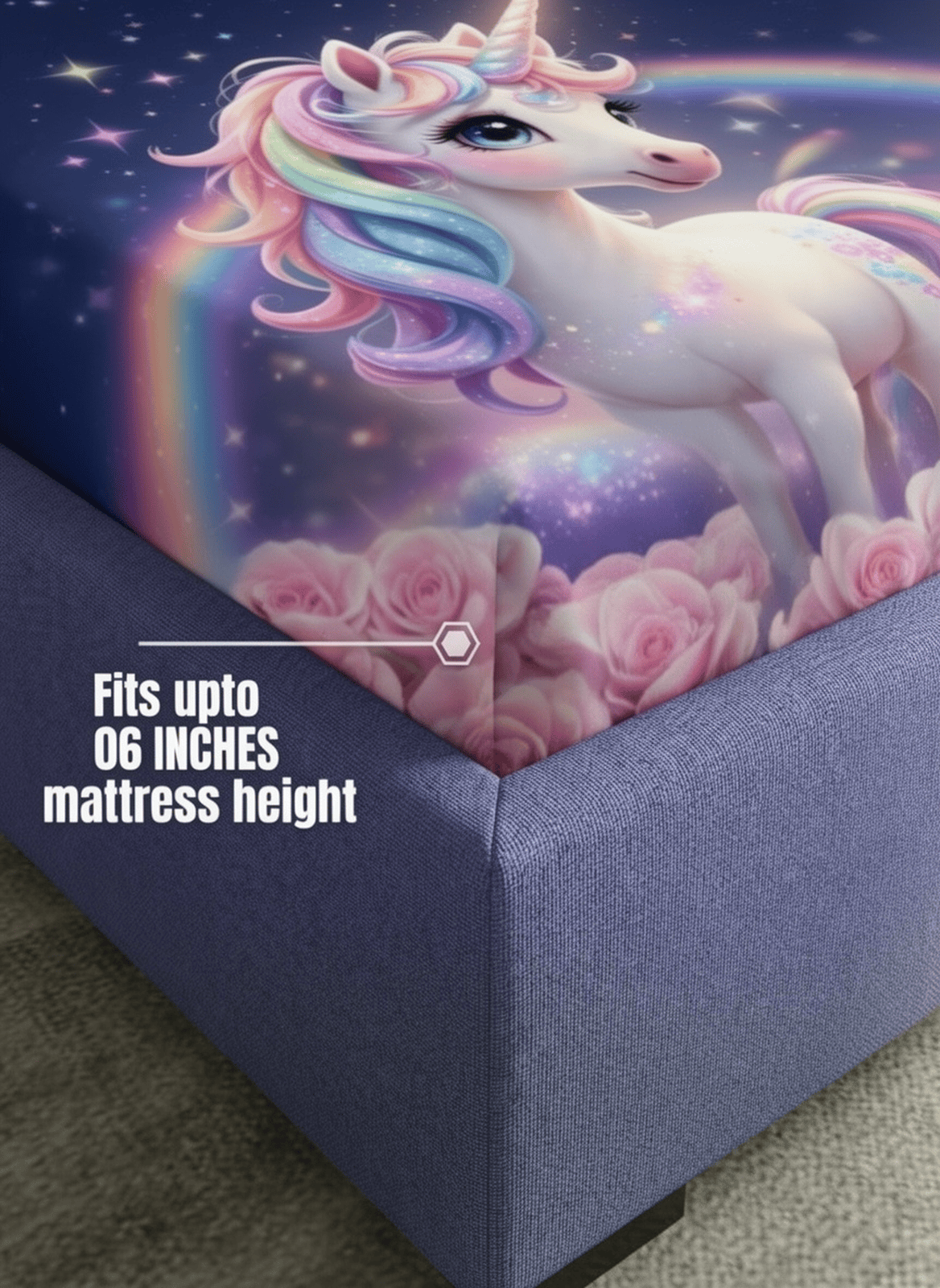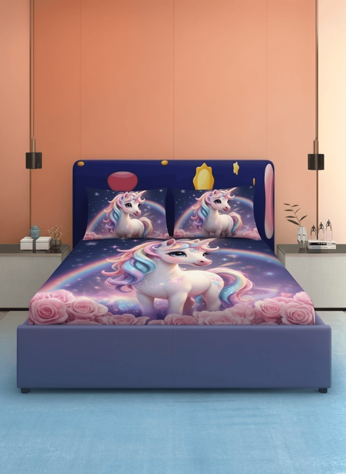 Add a magical and dreamy touch to your childβs bedroom with the Starlight Unicorn fitted bedsheet. Featuring a beautiful pastel unicorn design with rainbow accents on a deep night sky background, this bedsheet creates a fairy-tale inspired sleep space.