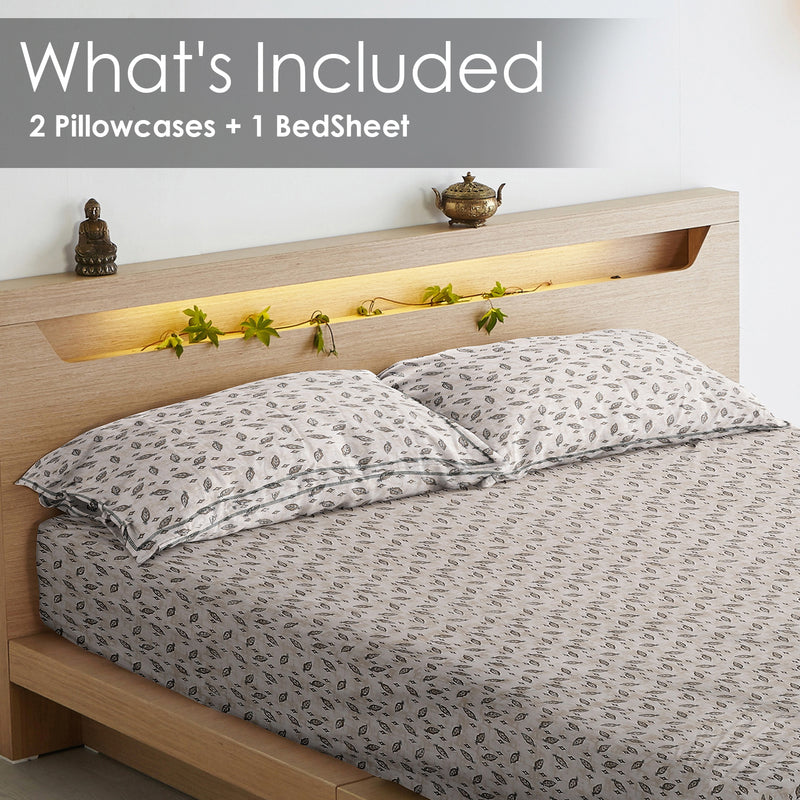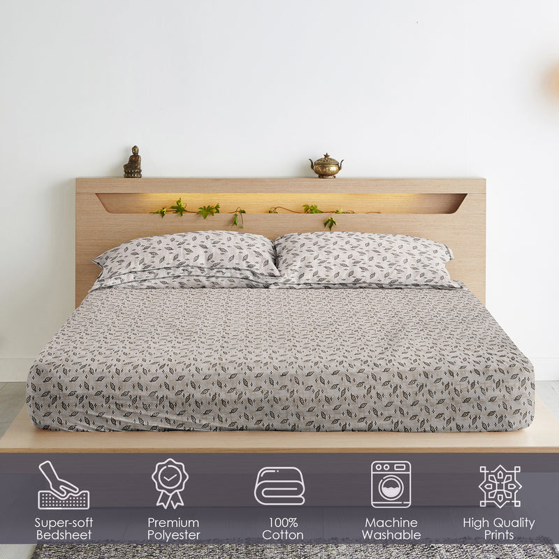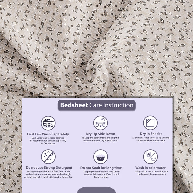 Bring home the timeless elegance of the Chandni Vriksh Bedsheet, where subtlety meets sophistication. Designed with a soothing beige-grey backdrop and intricate leafy patterns, this piece captures the essence of nature in its most minimal and graceful form.