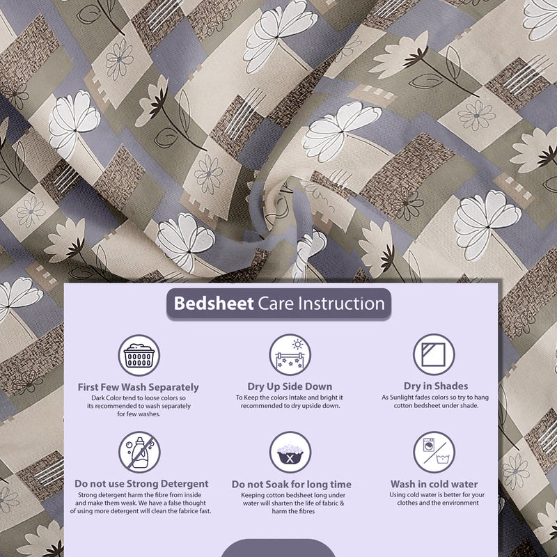 Bring subtle elegance and modern charm to your bedroom with the Gulistaan Patchwork Bedsheet. Designed in soothing shades of grey, beige, and muted blue, its patchwork-inspired layout is beautifully adorned with delicate floral sketches. The blend of geometric blocks with soft floral motifs creates a perfect balance of structure and grace.