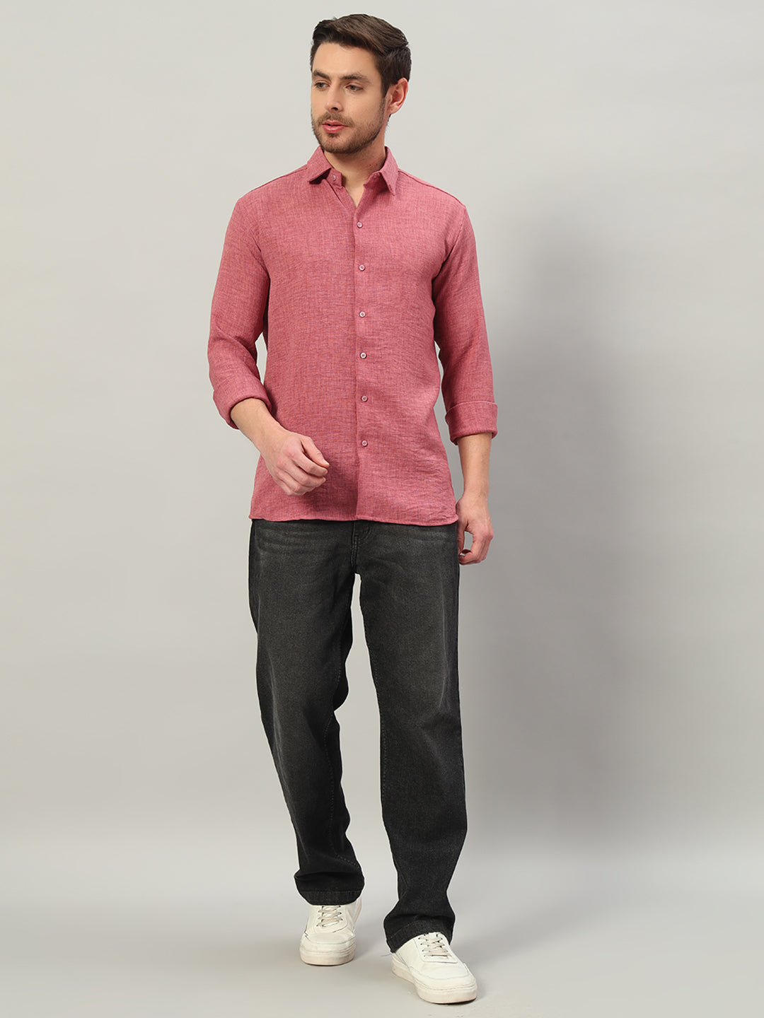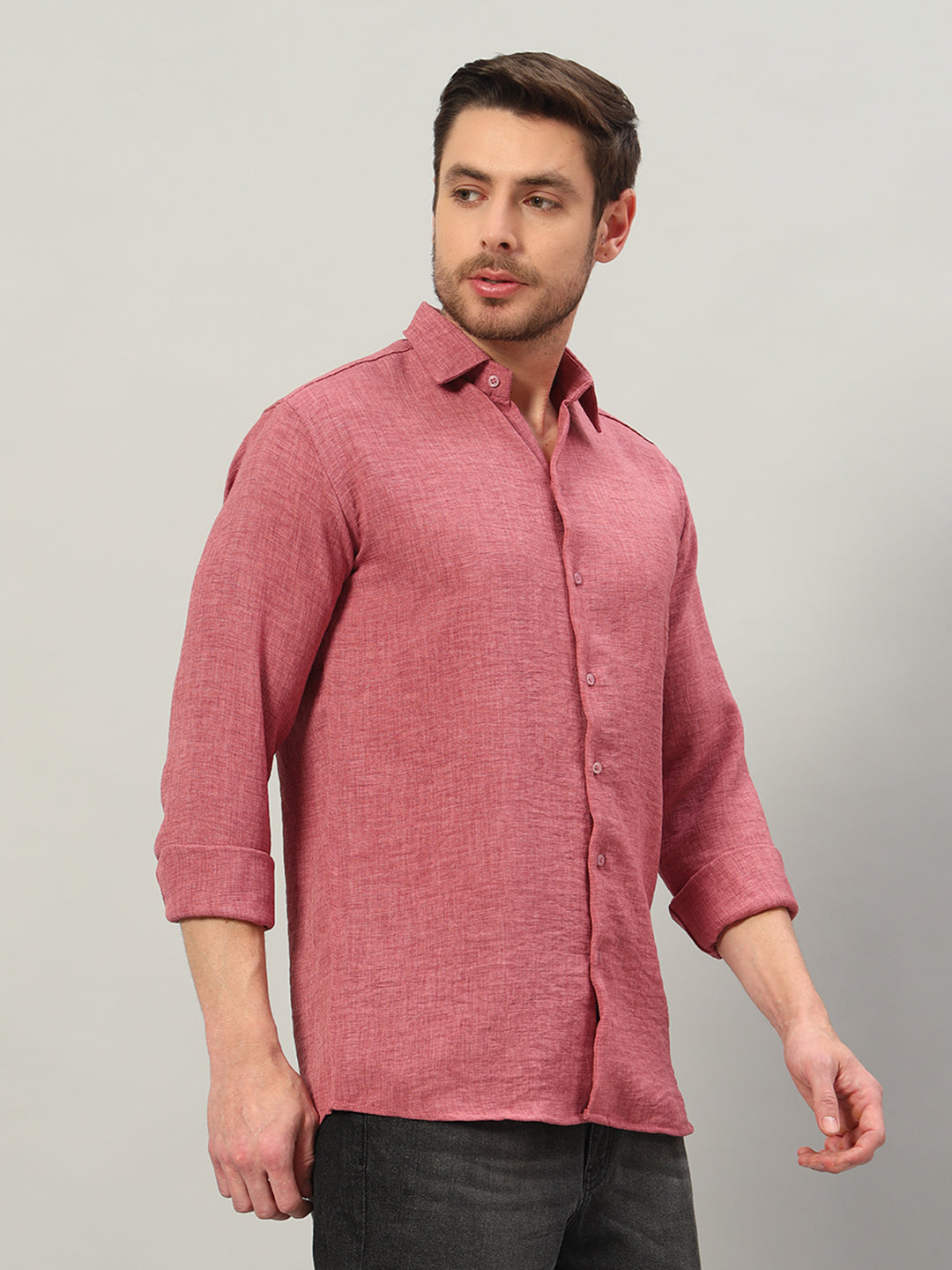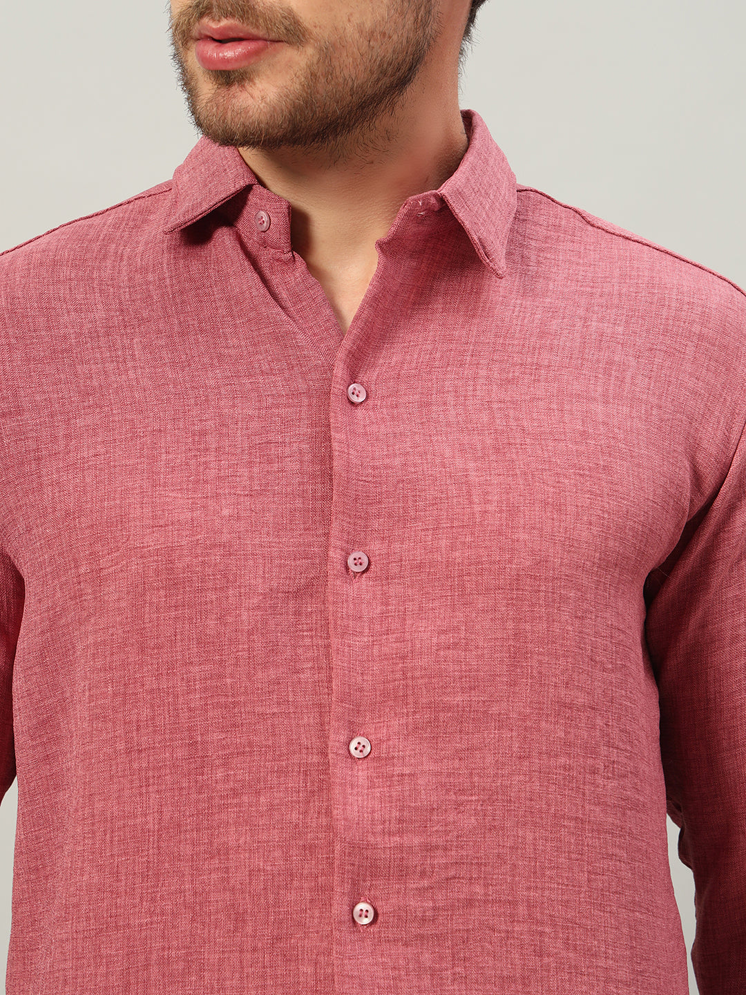 The Turkish Rose Linen Blend Shirt adds a refined pop of color, balancing softness with a structured fit.