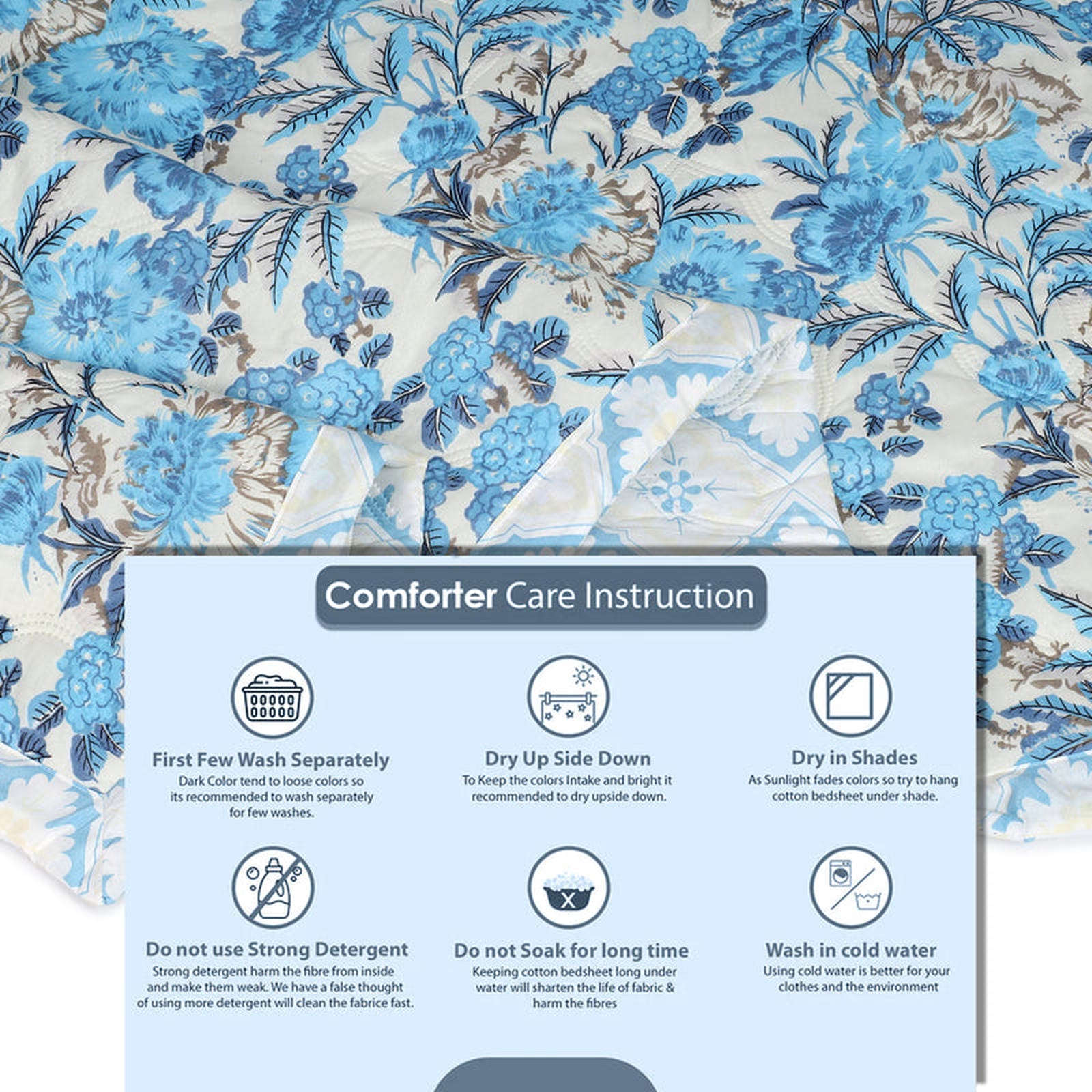 💖 Experience Serene Comfort & Effortless Style! Immerse yourself in the calming beauty of our blue and cream reversible comforter. One side features a timeless pattern of elegant blue blossoms, while the reverse offers a fresh, intricate geometric design, creating a truly versatile and inviting retreat.