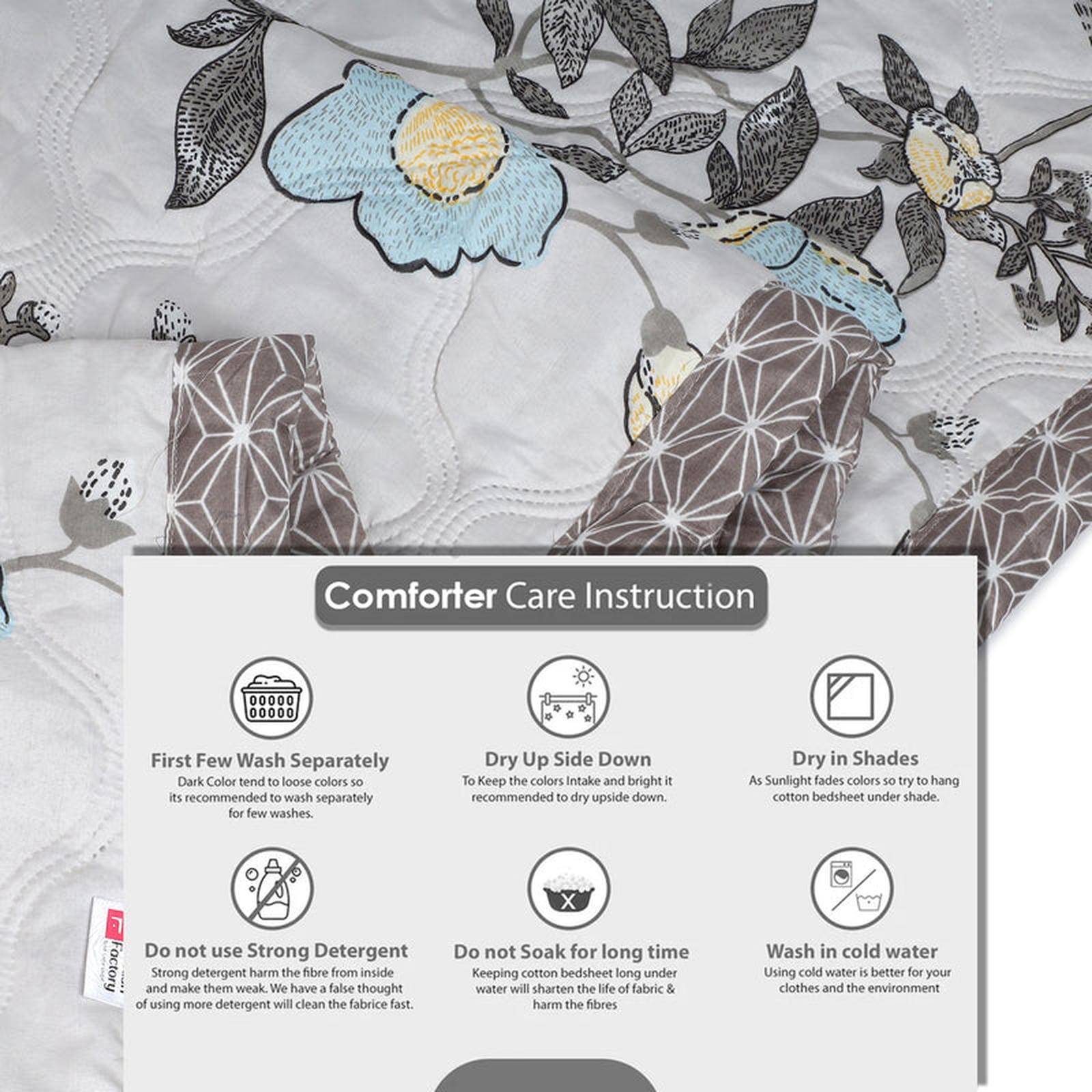 π Drift into Dreamy Comfort! Adorn your bed with our serene cream and grey reversible comforter, featuring delicate blue and yellow floral accents on one side and a chic geometric lattice pattern on the other, for a touch of subtle elegance and cozy charm.