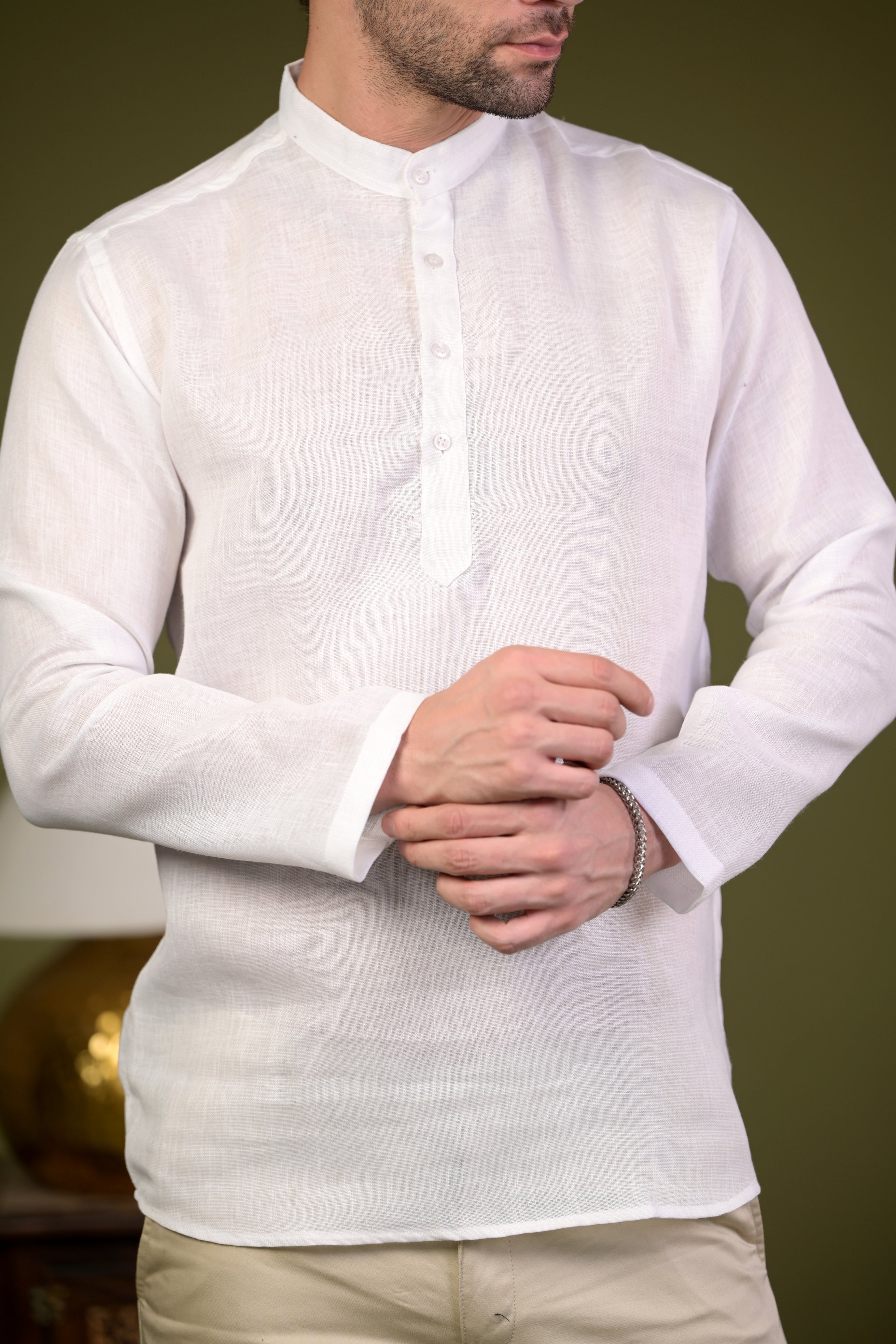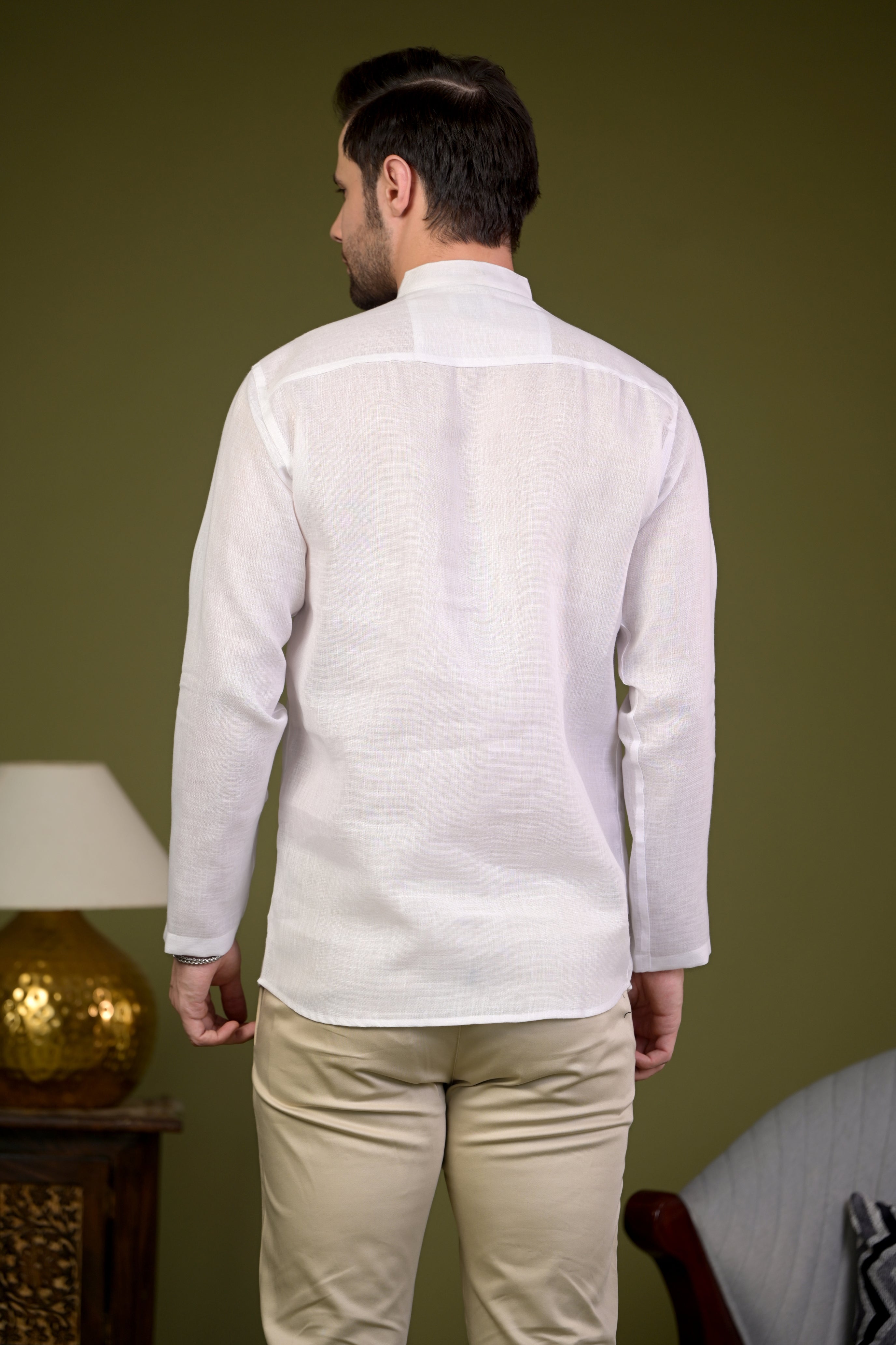 Crafted from a premium linen blend, this full-sleeved short kurta is lightweight, breathable, and designed for all-day comfort. The Mandarin collar adds a refined touch, making it an ideal choice for casual outings, festive occasions, and formal gatherings. The classic white color enhances its versatility, allowing you to pair it effortlessly with jeans, trousers, or traditional wear. Available in S, M, L, XL, XXL, this kurta ensures a flattering fit for everyone.